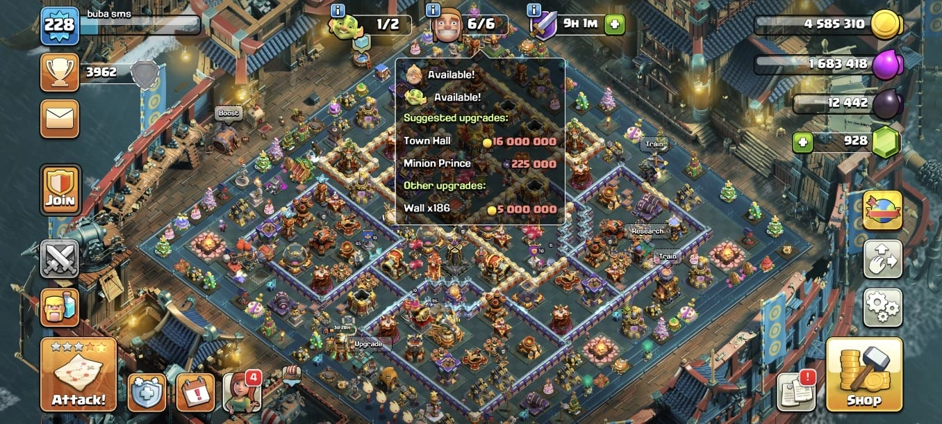 Town Hall 16 Max đ„ Skill Epic On 7 đ„ Change name on đ„ Very cheap & Guaranteed accountđ„