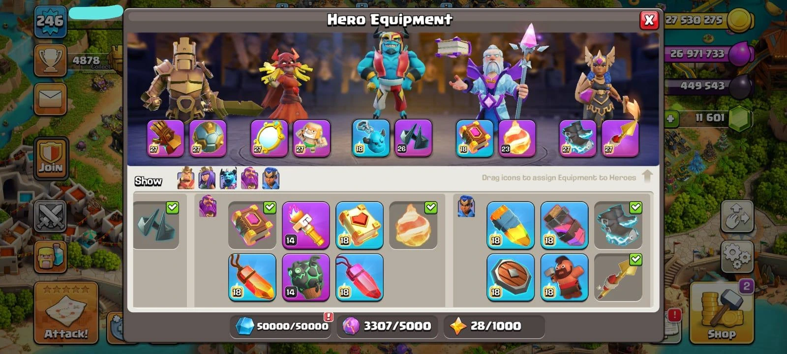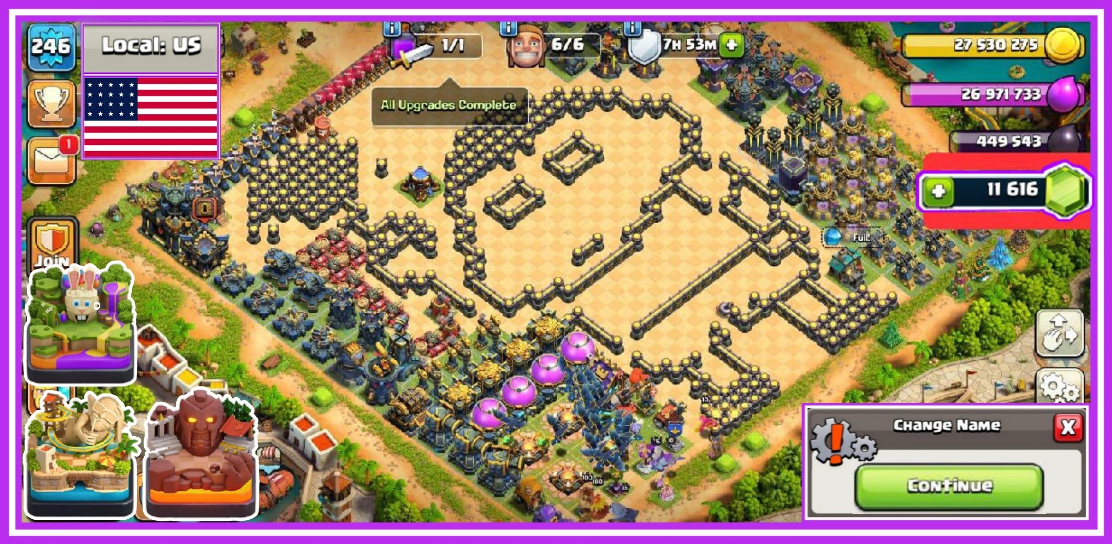 🔥US LOCAL🇺🇸🔥RARE ACC😍101% MAX Th 17‼️LEAGUE SET🥵11600 GEMS-958 CWL🍀60+ COOL SKIN🎗️4 RARE SCENERY💢HELPER HUT MAX🙂↔️FULL MAGIC ITEMS😍BH MAX💢NC FREE🍀INSTANT ACCESS