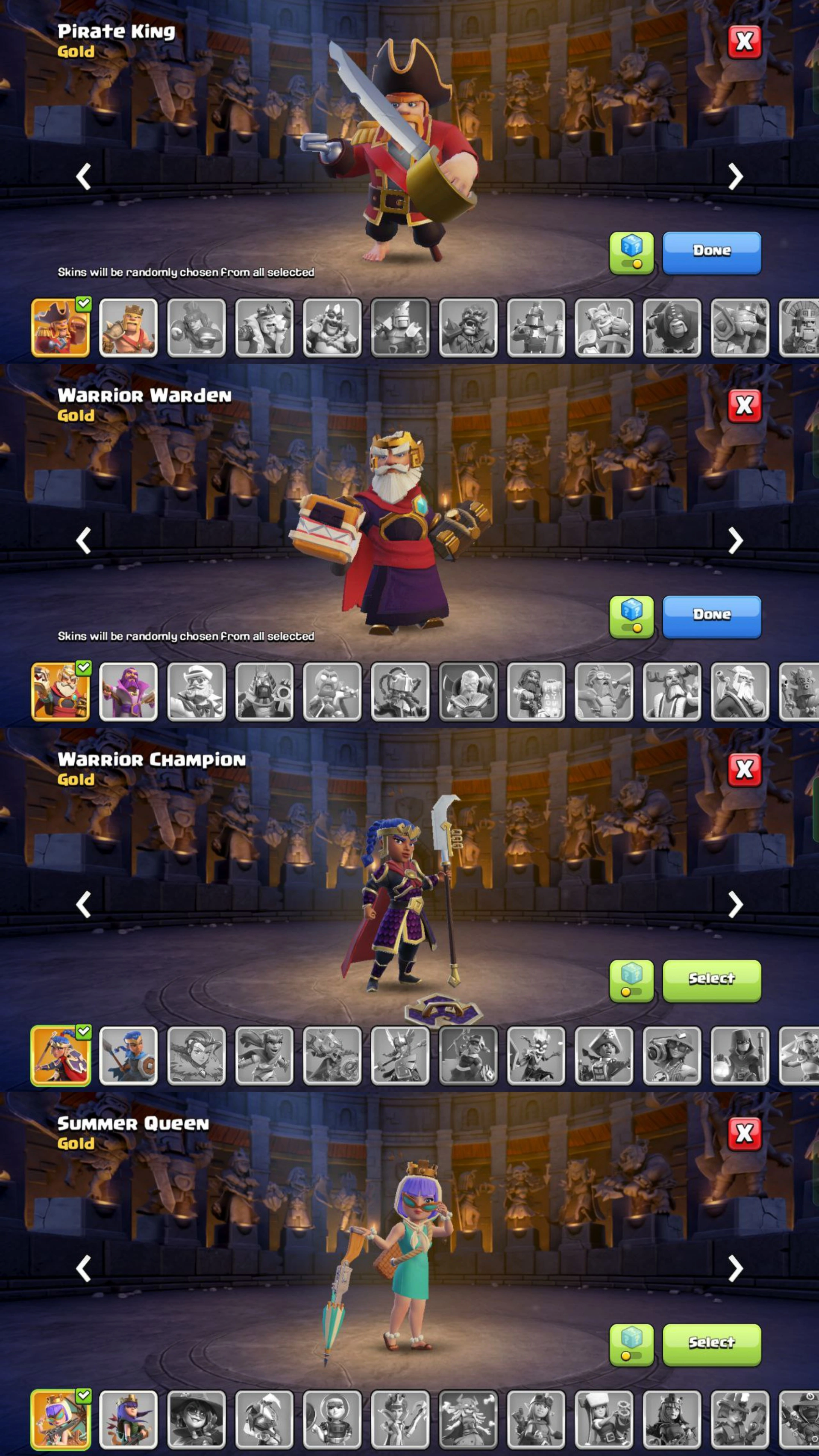 [WARRIOR SKINS OF WARDEN & RC] TH15 NEW | HERO:68-70-50-24 | XP:177 | 2 SCNERY | 4 SKINS | NAME CHANGE AVAILABLE | MAGIC ITEMS