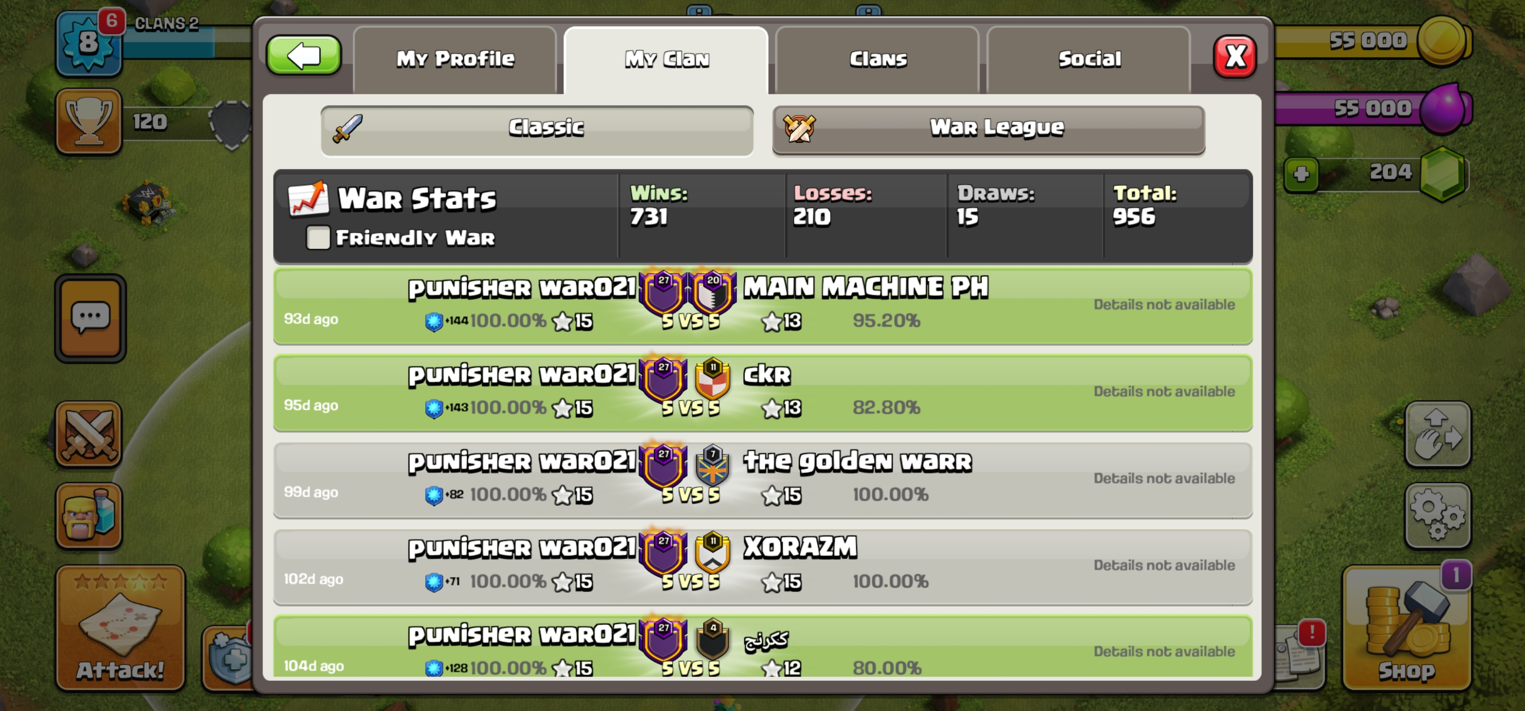 [ CHAMP 2 ] 🔥 73 WAR WIN STREAK 🔥 LEVEL 27 🔥 ENGLISH NAME - WAR PUNISHER021 🔥 [ 731 WIN / 210 LOOS / 15 DRAW ] 🔥