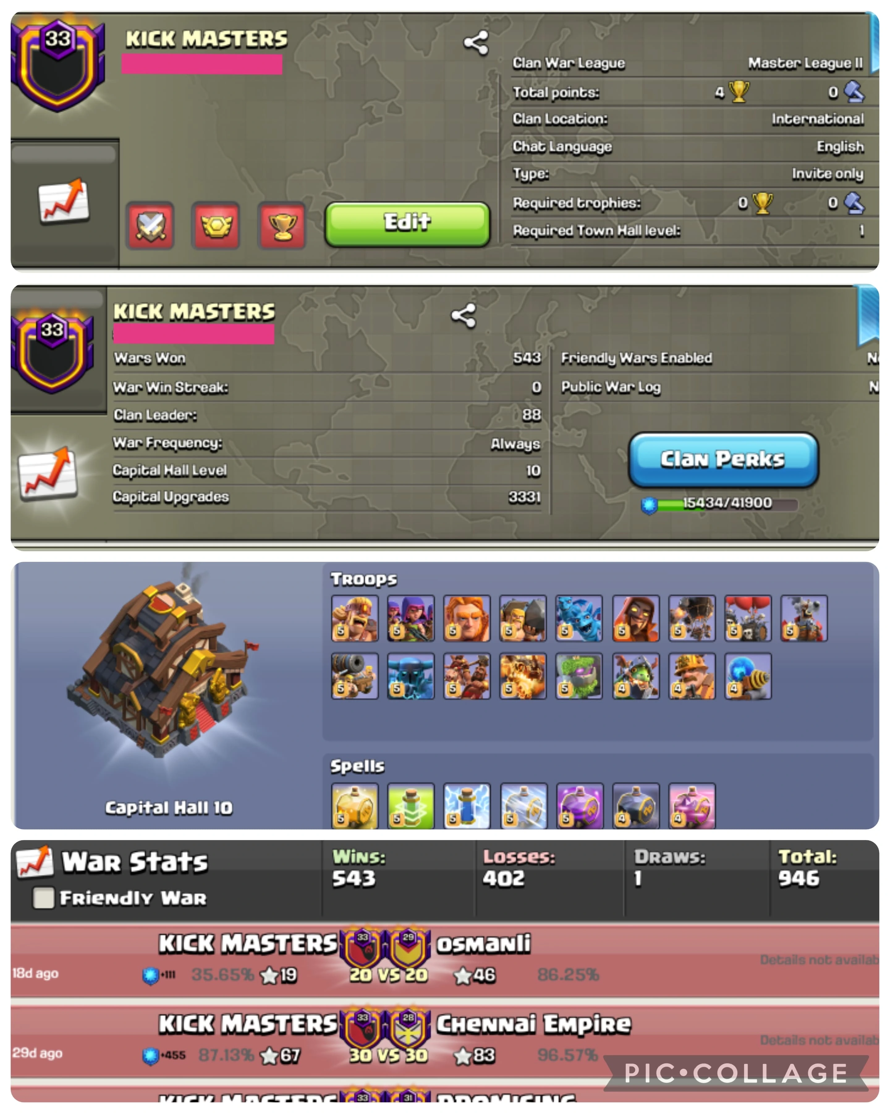 đ„NAME- HeLL boys | LVL 28.5đ„”| đ„WARLOG W/L/D:473/405/83| CWL League: MASTER 3đ| CC: 10 FULL MAX !!đ„