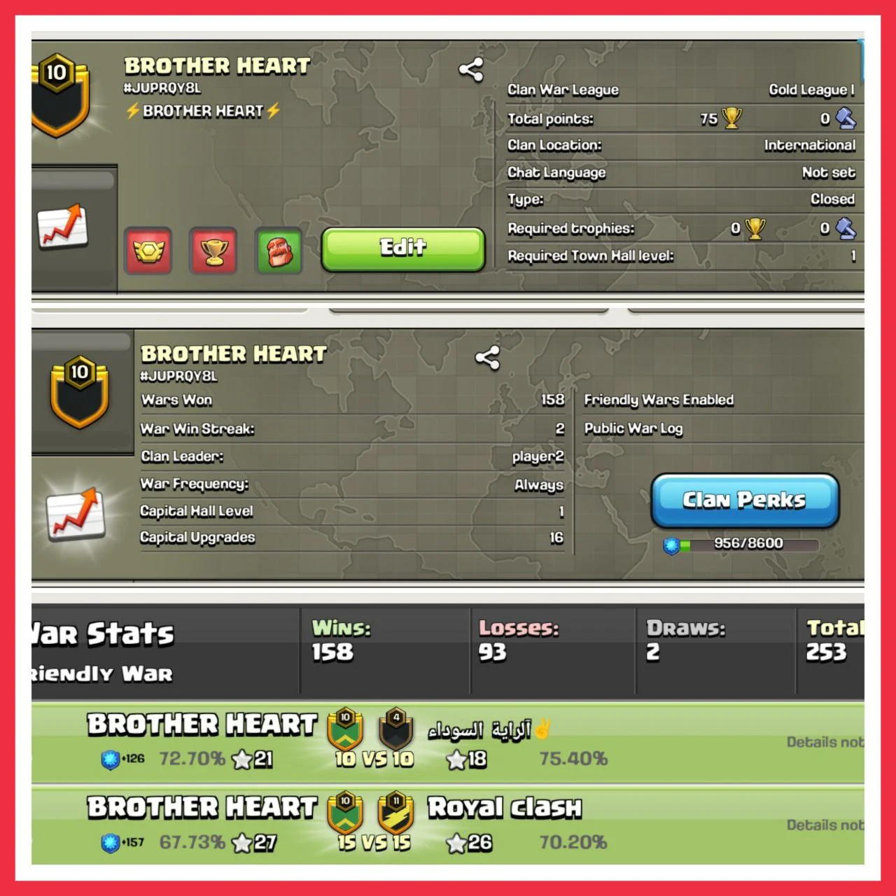 ✅ CHEAPEST ✅ ENGLISH NAME 📛 LEVEL 10 CLAN 📛 BROTHER HEART 📛 GOLD LEAGUE 1 📛 158:93 WAR LOG 📛 INSTANT DELIVERY 📛