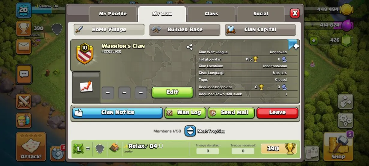 LEVEL 29//CLAN NAME HERO//MASTER 1//CLAN CAPITAL 10 FULL MAX 3331// WAR WIN 513