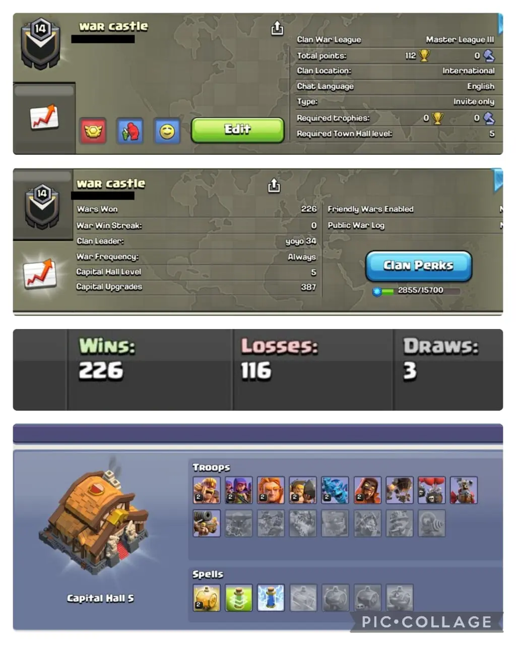 đ„[MASTER 3]đ„NAME- war castle | đ„LVL- 14 |â ïž WARLOG W-L-D: 226-116-3 | CWL LEAGUE : MASTER 3đ | âĄâĄ