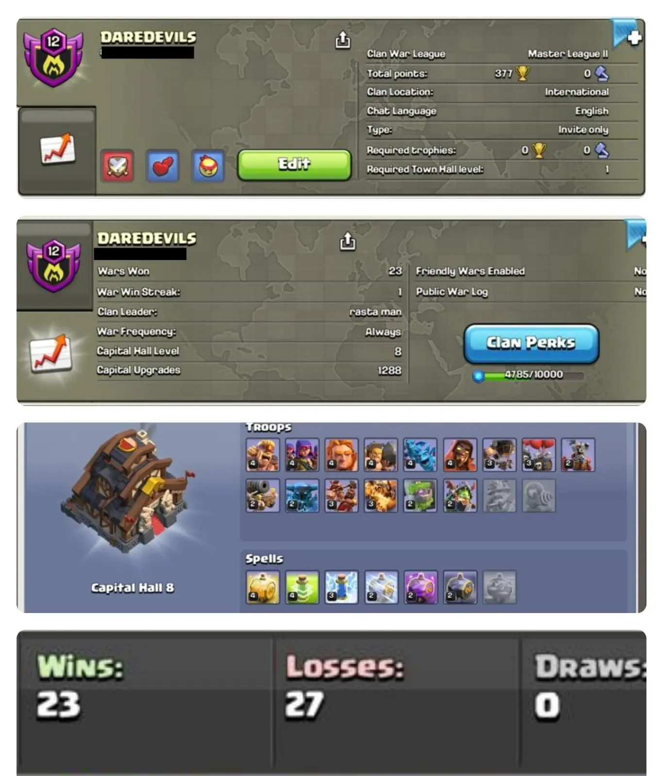 đ„[MASTER 2 CWL]đ„NAME- DAREDEVILS | đ„LVL- 12 |â ïž WARLOG W-L-D: 23:27:0 | CWL LEAGUE : MASTER 2đ | CC: ALMOST9 !!âĄâĄ