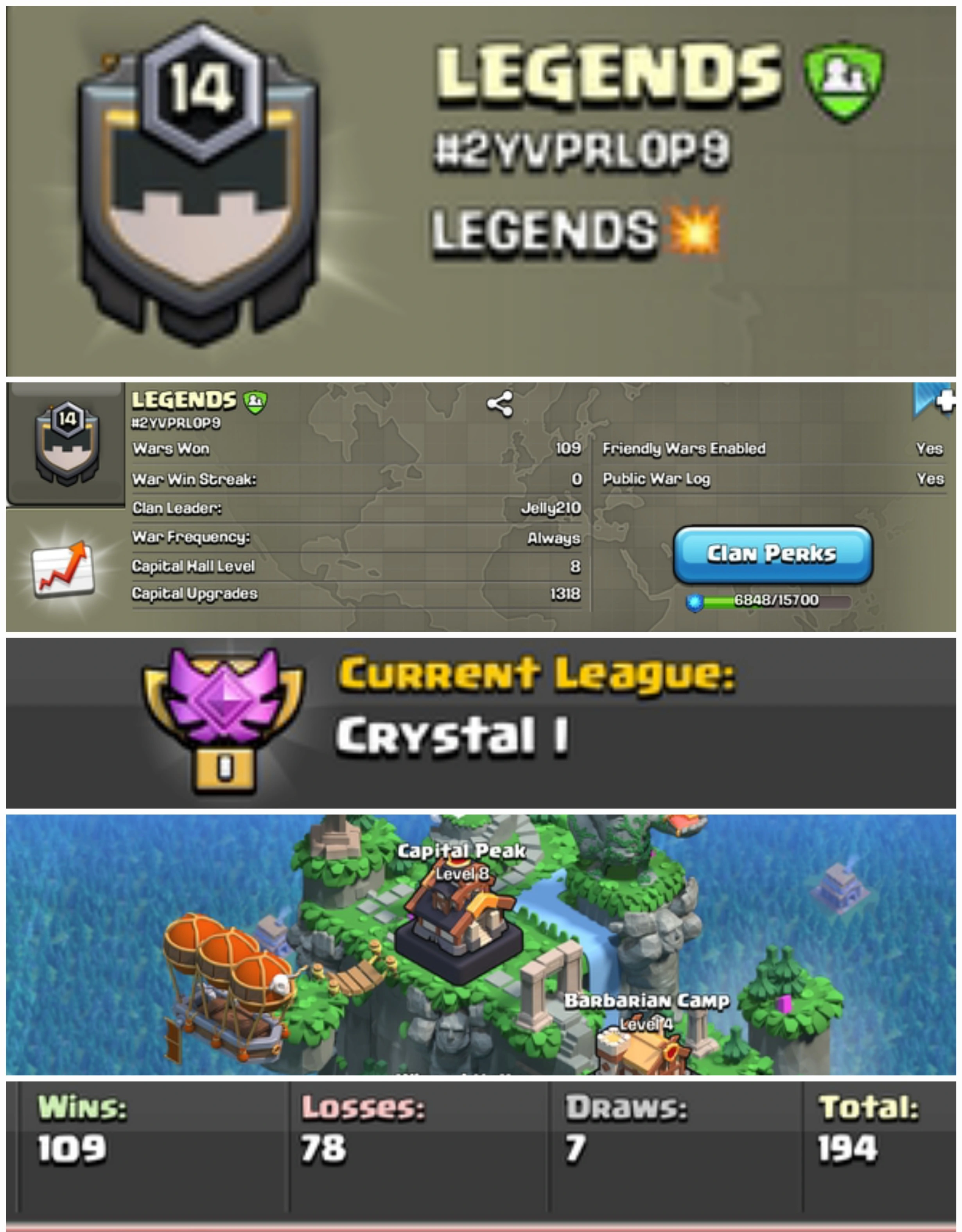 LEGENDS !! LEVEL 14.6 !! WIN 109 LOSS 78 !! CAPITAL PEAK 8 !! CRYSTAL LEAUGE 1 !! MOST DEMANDING NAME !! PERFECT NAME !! CHEAP !! FAST DELIVERY