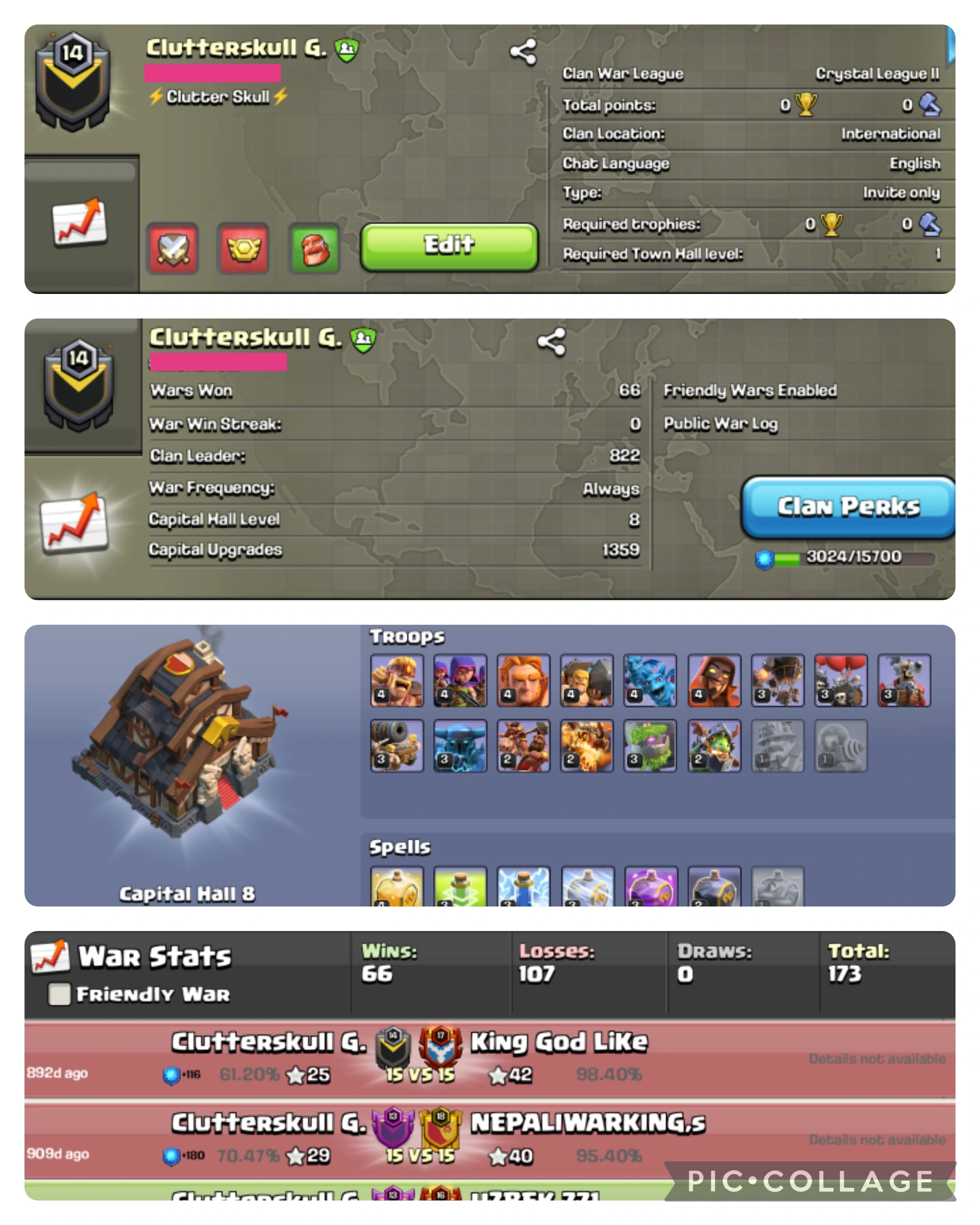 đ„NAME- HeLL boys | LVL 28.5đ„”| đ„WARLOG W/L/D:473/405/83| CWL League: MASTER 3đ| CC: 10 FULL MAX !!đ„