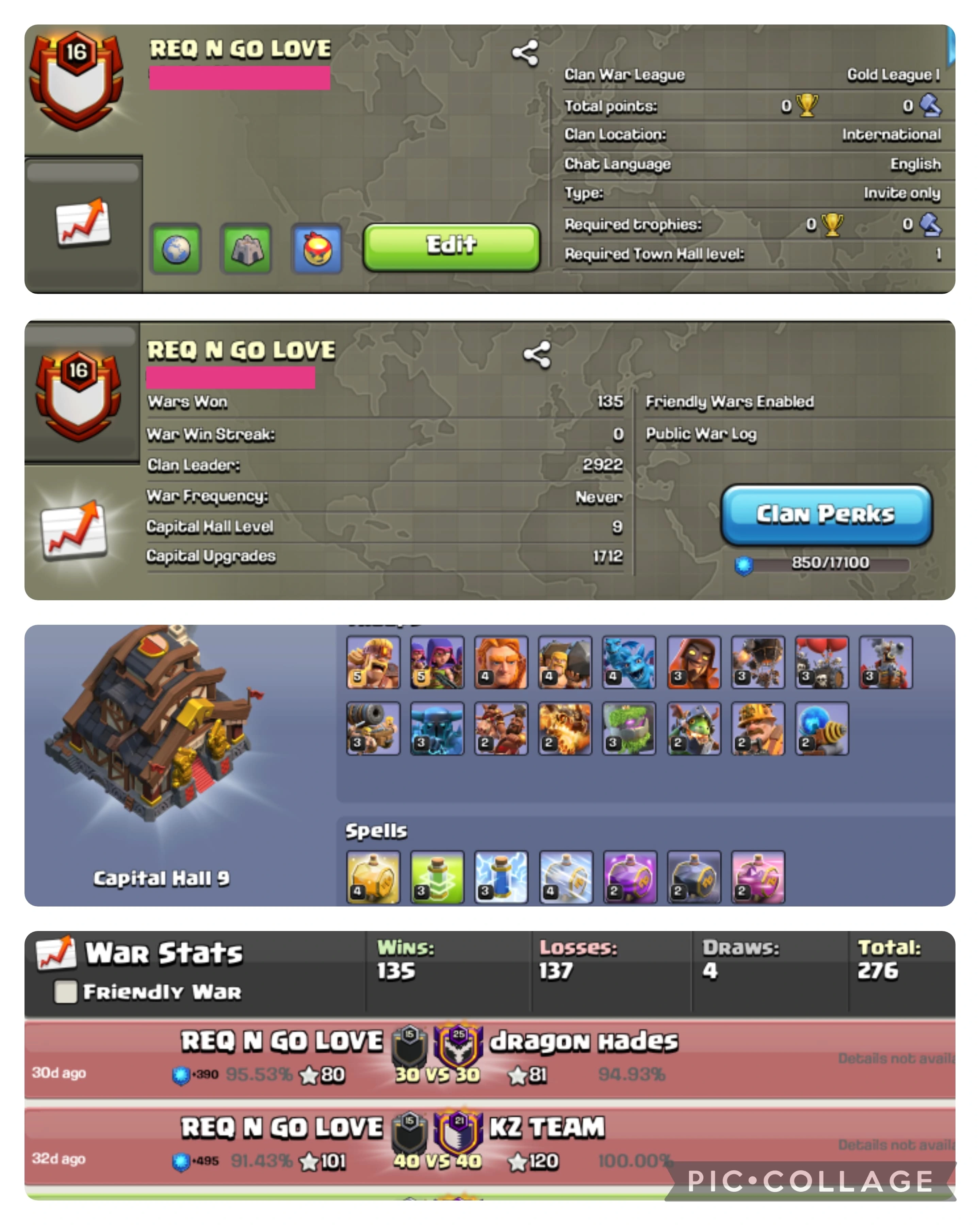 đ„¶CC 9 + LEVEL : 16 đźâđš NAME : REQ N GO LOVE đ€GOLD 1 đ€© 135 WINS 137 LOSSES đ€