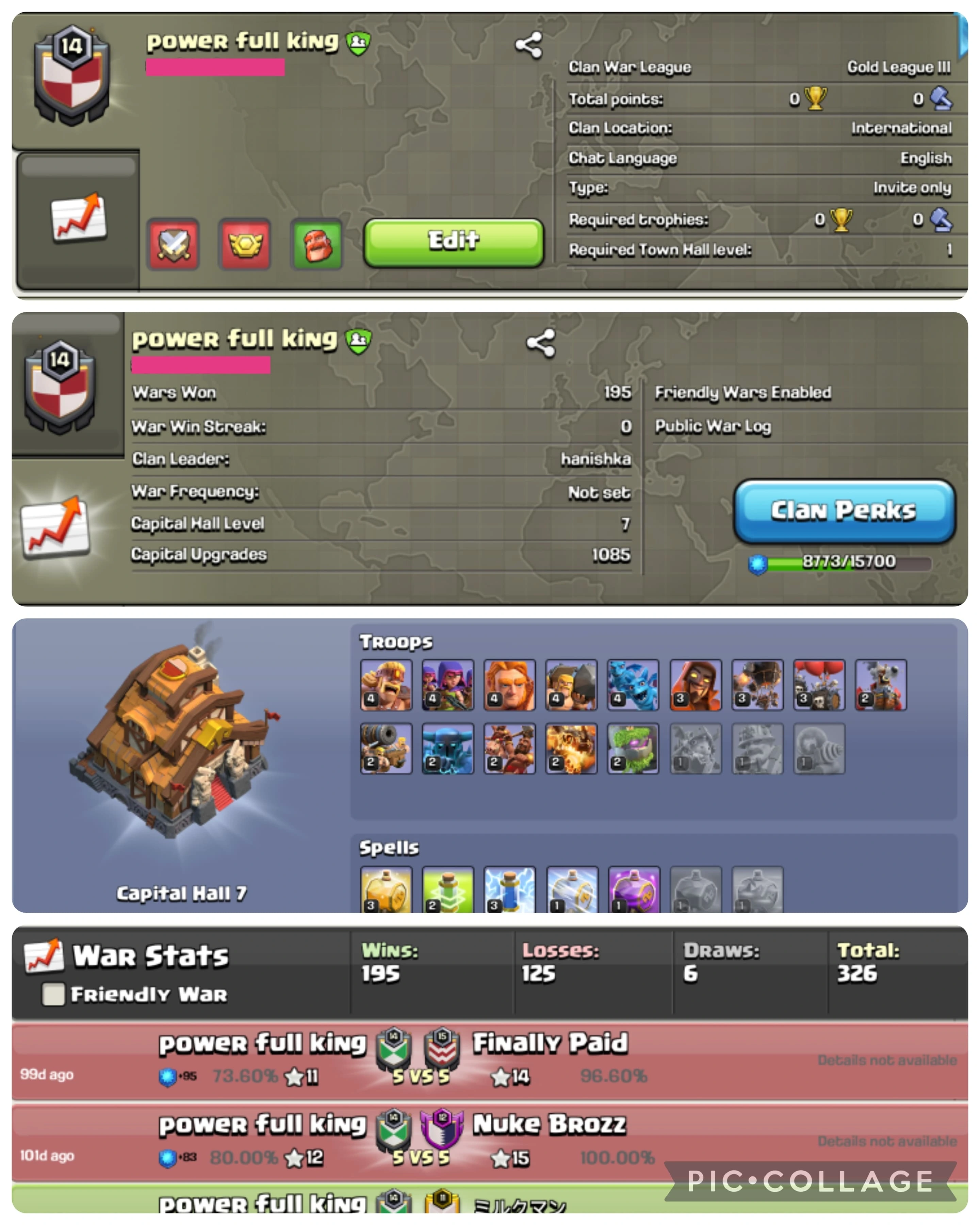 đ«¶LEVEL : 14.6 + CC 7 đ POWER FULL KING đ GOLD 3 đ„ 195 WINS 125 LOSSES 6 DRAWS đ€Ż