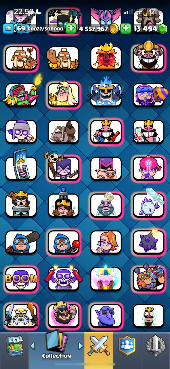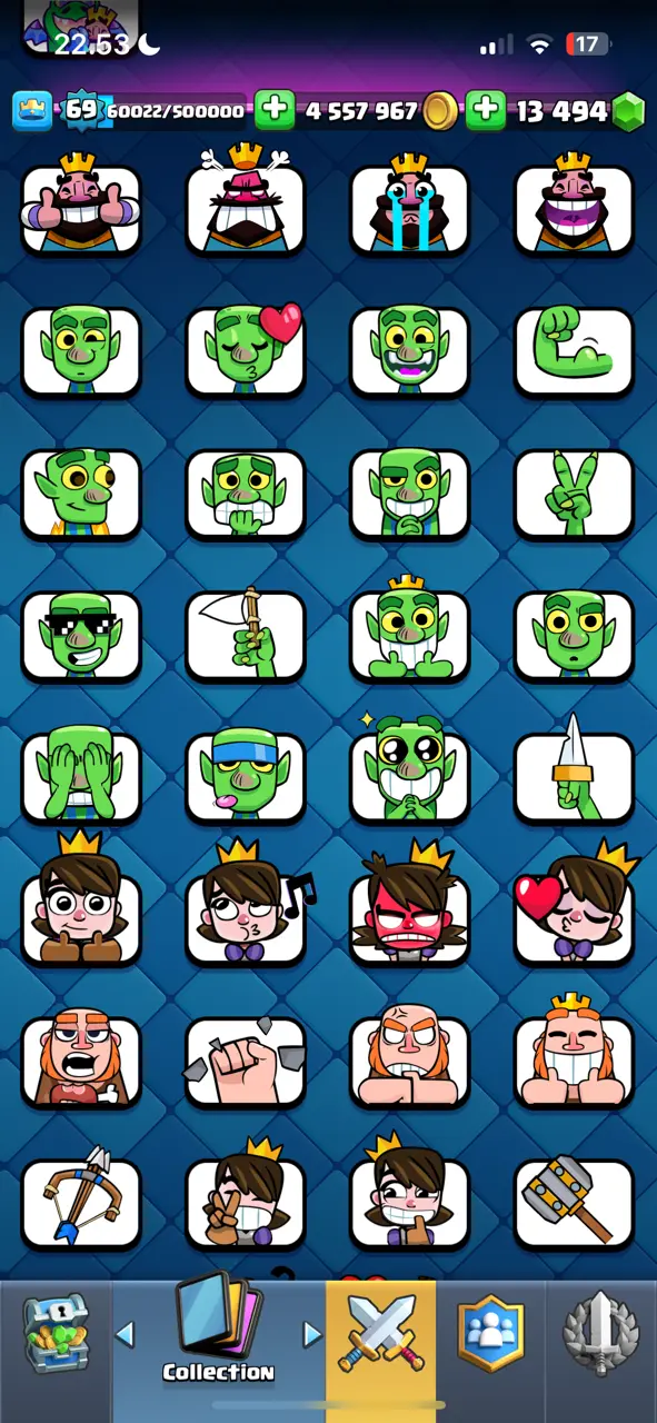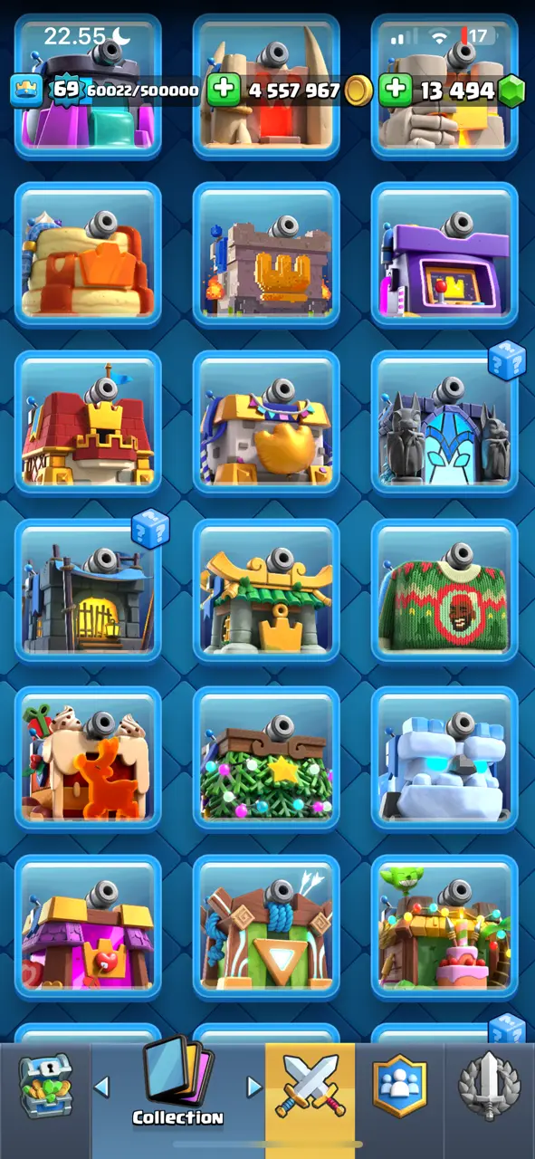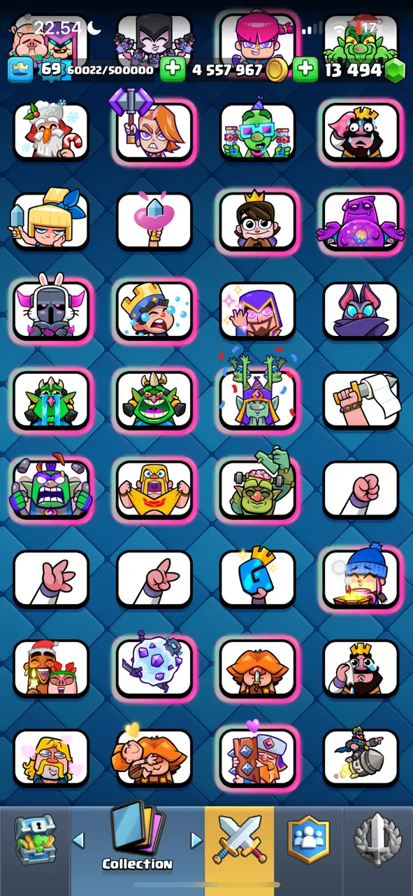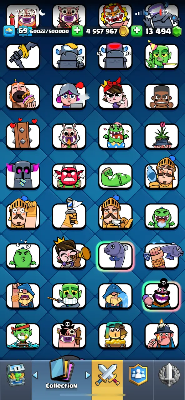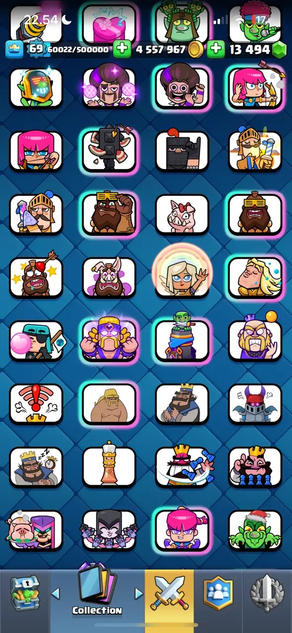 💎13k Gems 🔥Very Rarest 415 Emotes🔥 CR Lv.69 🔥 CRL 2022 Badge 🔥 Change Name ON 🔥 Seasonal Arena 3 🔥 12000 Trophies 🔥 KT 15 🔥 23 Evo Cards 🔥 121 Max Cards & 82 Elites 🔥 415 Emotes 🔥 84 Tower Skins 🔥 [F2675] 🔥
