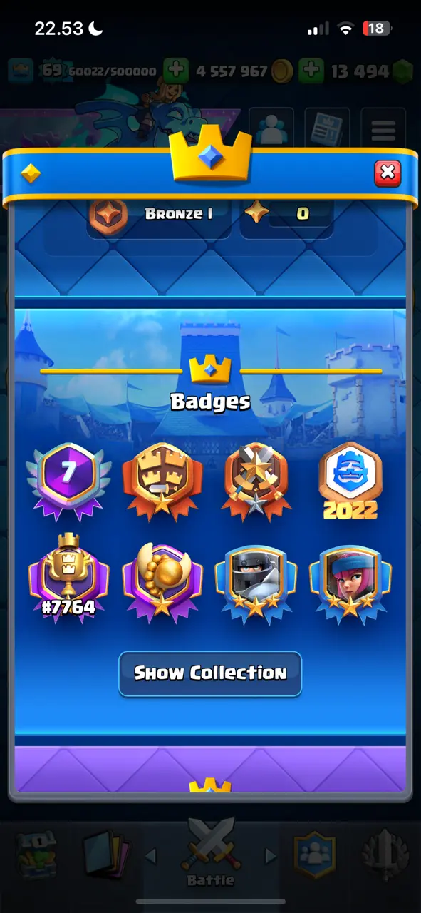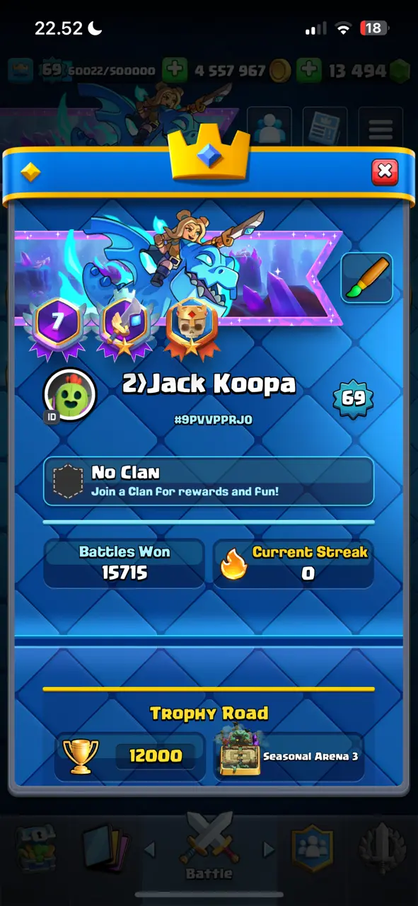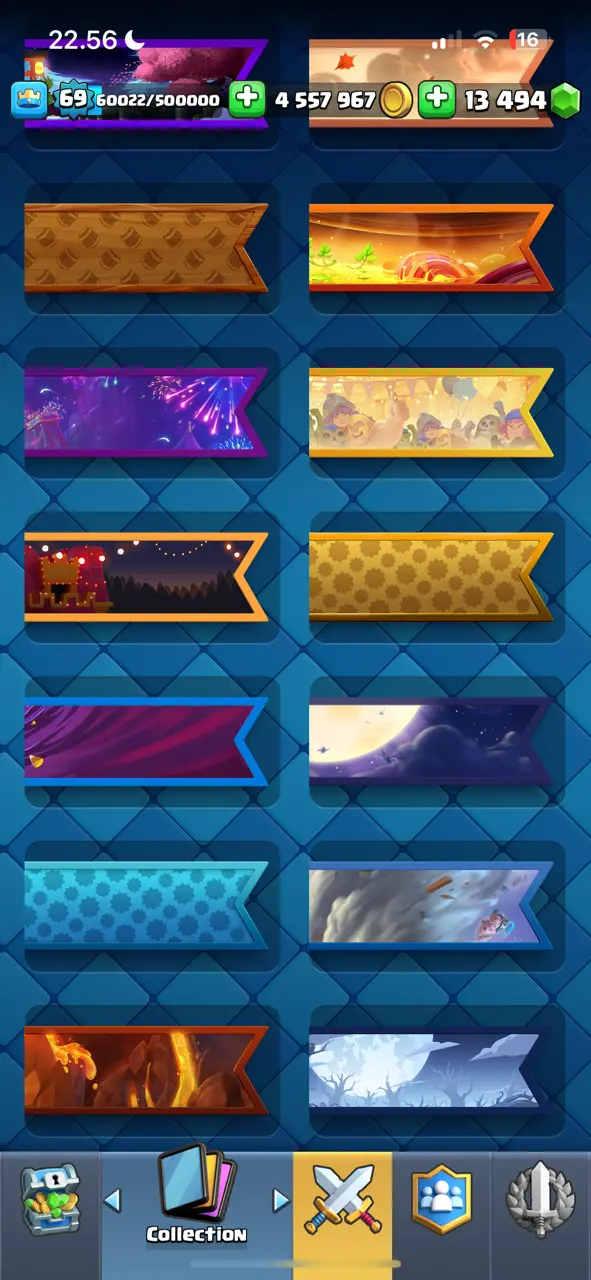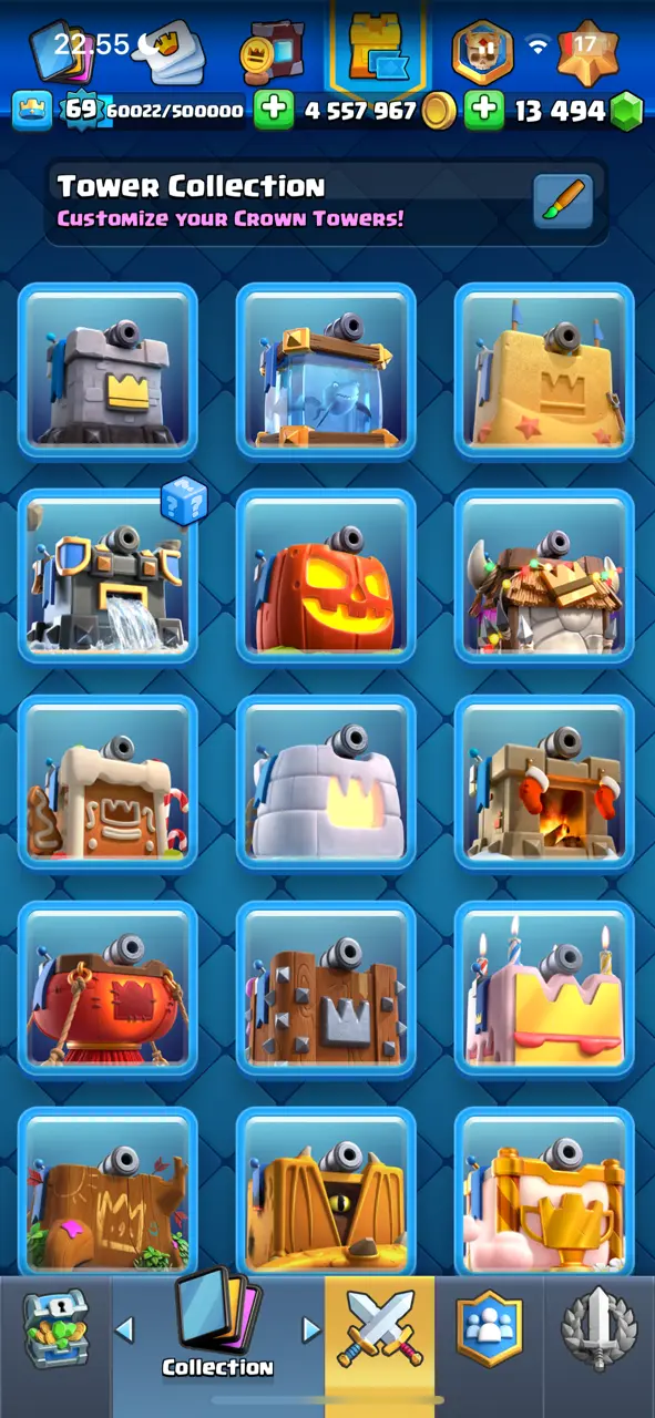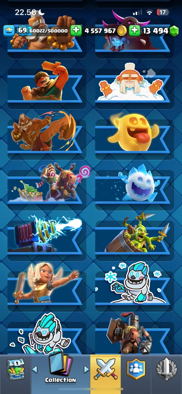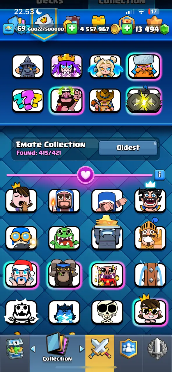 💎13k Gems 🔥Very Rarest 415 Emotes🔥 CR Lv.69 🔥 CRL 2022 Badge 🔥 Change Name ON 🔥 Seasonal Arena 3 🔥 12000 Trophies 🔥 KT 15 🔥 23 Evo Cards 🔥 121 Max Cards & 82 Elites 🔥 415 Emotes 🔥 84 Tower Skins 🔥 [F2675] 🔥