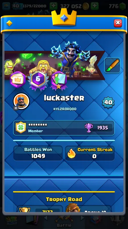 7173 TROPHY 🏆 13 KT 🚀 LVL 40 👑 115 CARDS 🍉 2 MAX CARDS 👑 2 ELITE CARDS ⚡ 24 EMOTE 🚀 EVO 1 🎭 #YL2R8RQ80 ⸱ TAG ACCOUNT ♥️