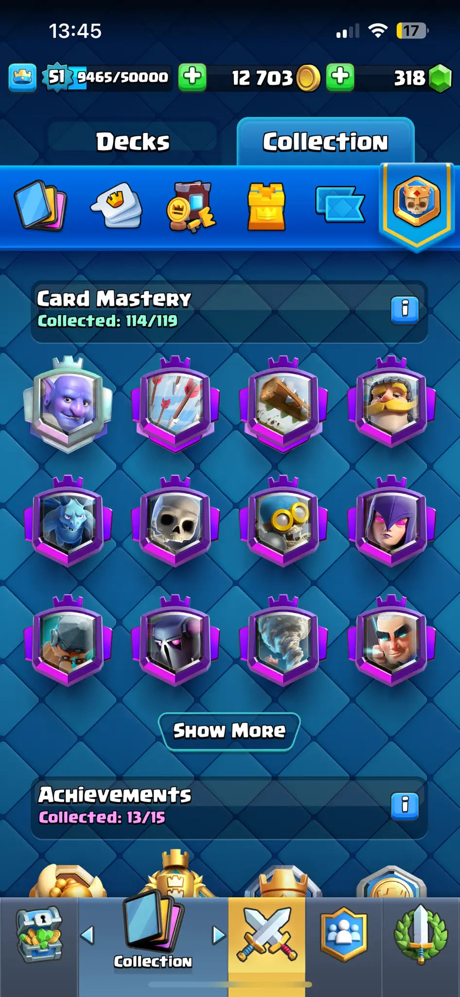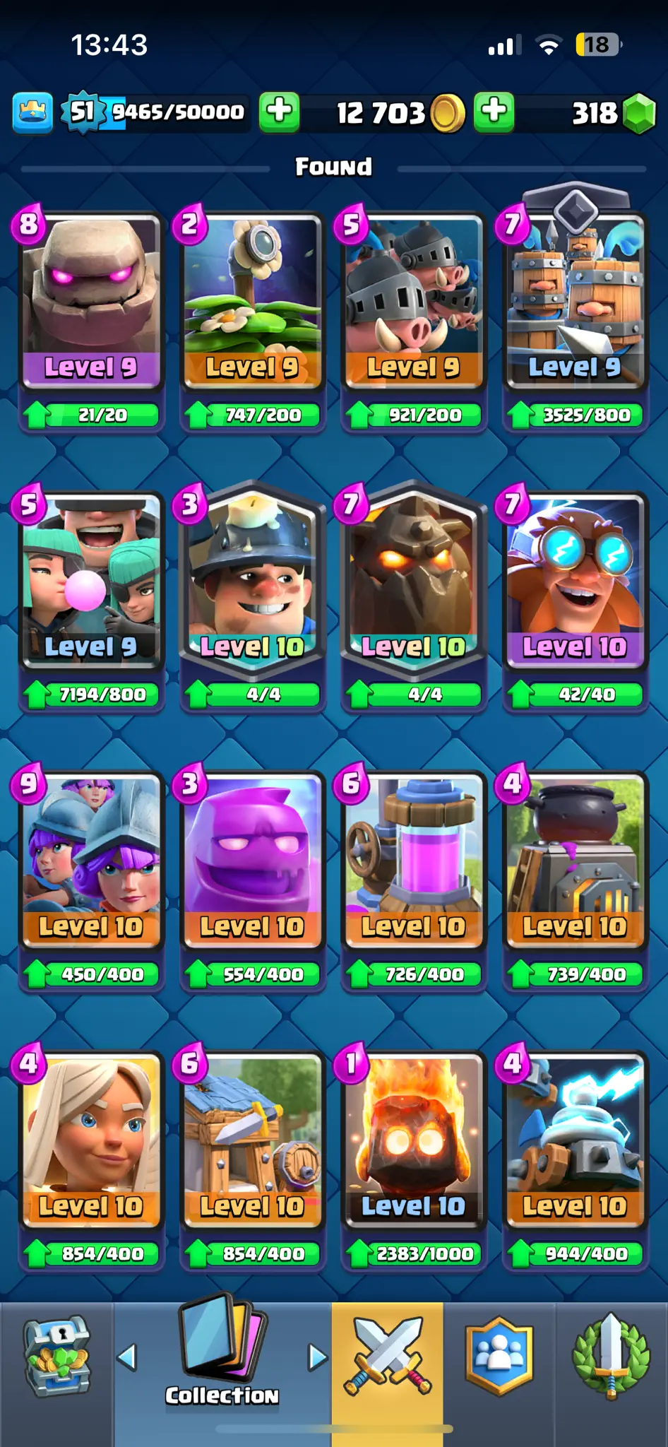 8 Evolutions Cards, Lvl51 : 7500TR | 15 cards lvl 14 + 2 Cards lvl 15,, 118 cards found, 320 gems, 45 emotes cards | Android & iOS | Instant Deliver