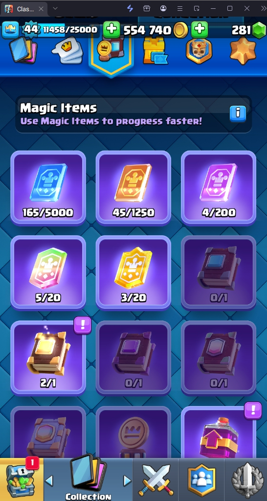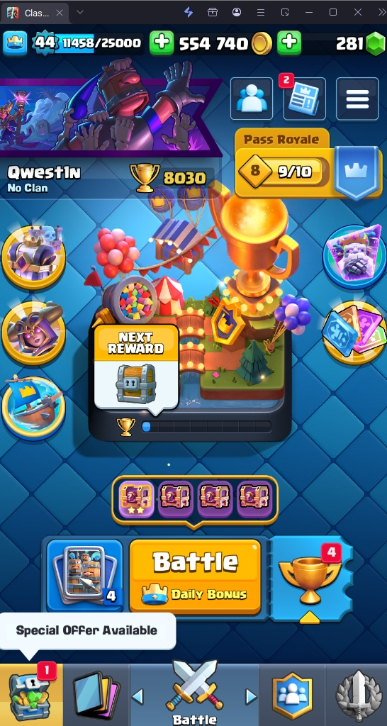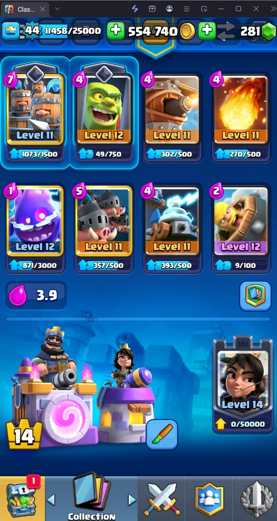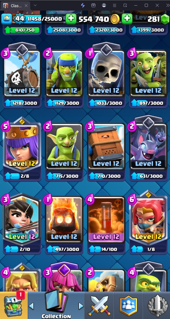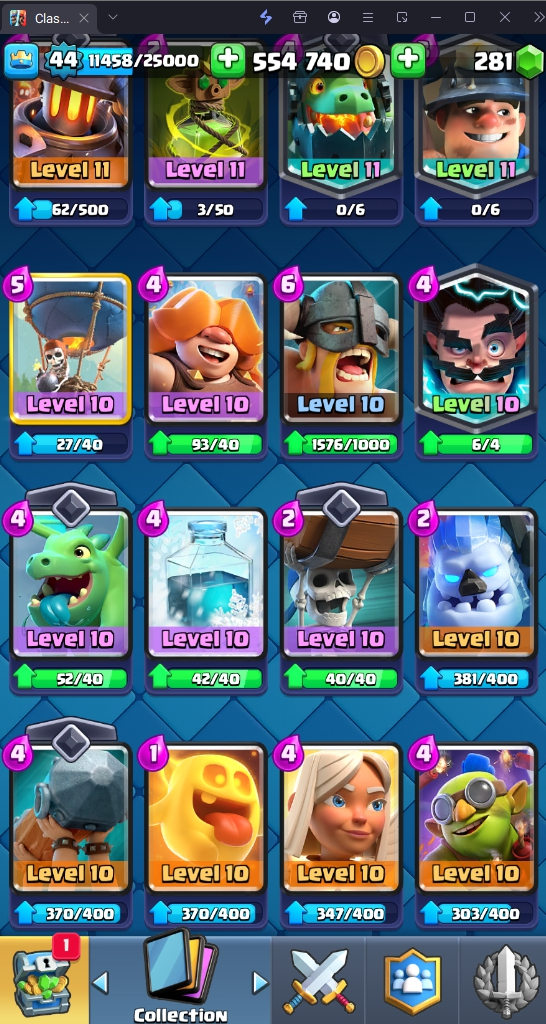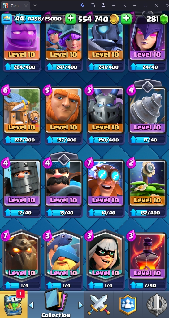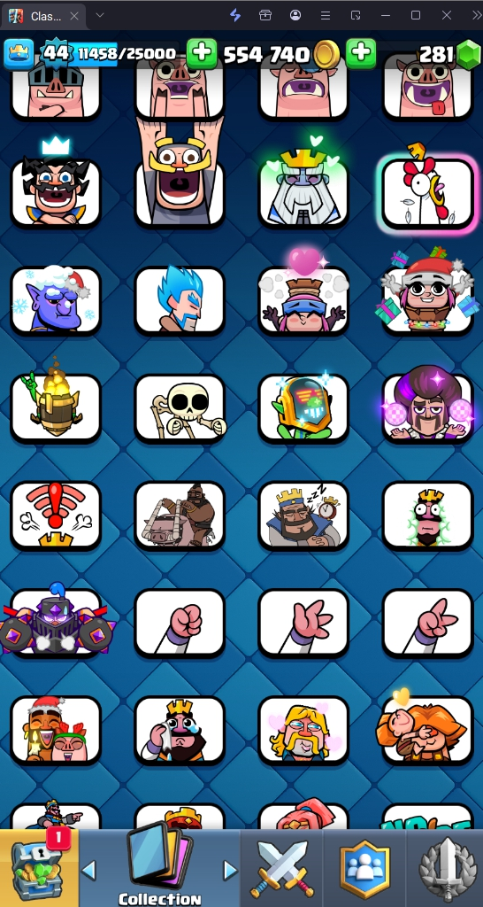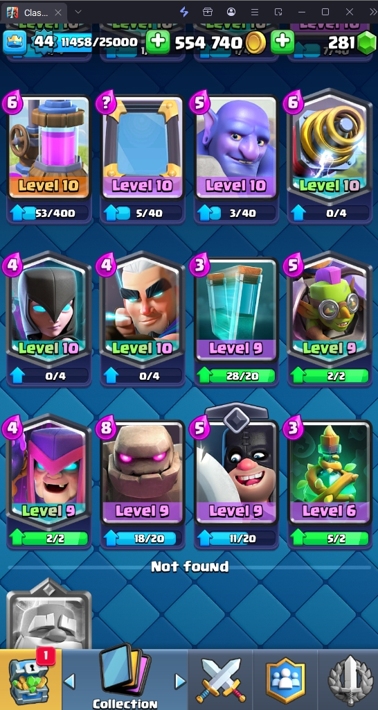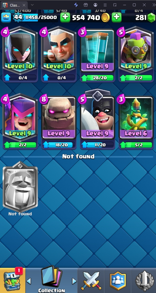 8030 TROPHY 🏆 44 LVL 💯 KT 14 👑 120 CARDS ♦️ 8 MAX CARDS 👑 1 ELITE CARDS 🔮 9 EVO 💯 EMOTE 58 🎭 #J8PC0GQYR ⸱ TAG ACCOUNT ♥️