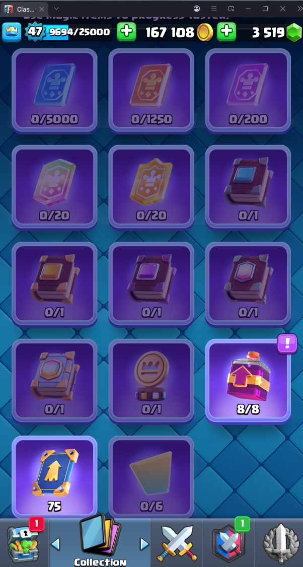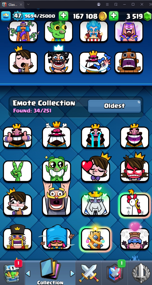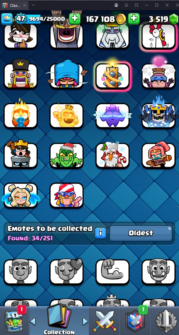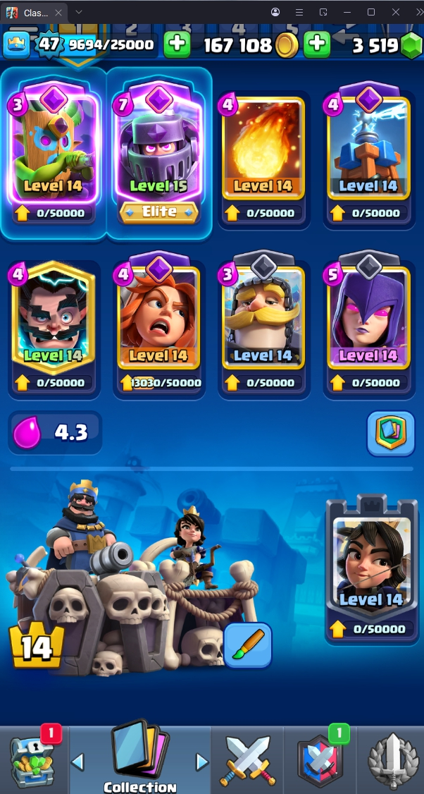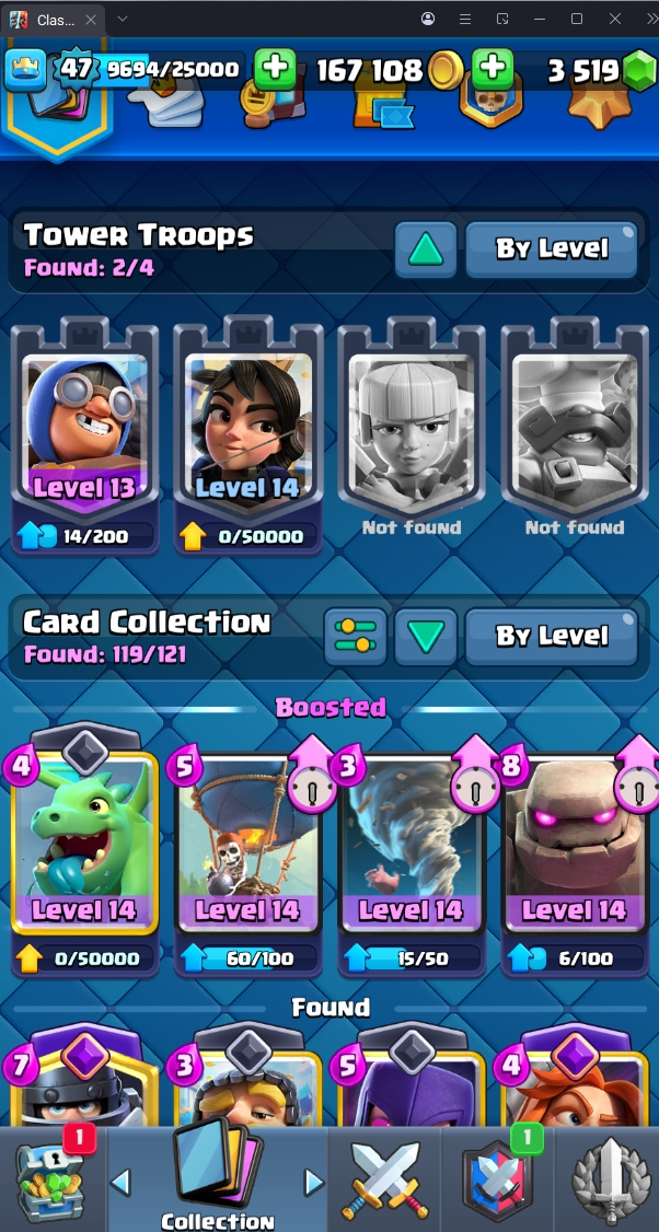 9067 TROPHY 🏆 47 LVL 💯 KT 14 👑 119 CARDS ♦️ 9 MAX CARDS 👑 1 ELITE CARDS 🔮 9 EVO 💯 EMOTE 34 🎭 #PLYJGQPGQ ⸱ TAG ACCOUNT ♥️