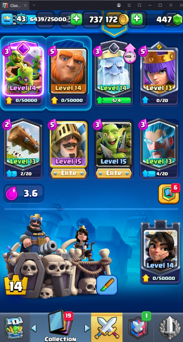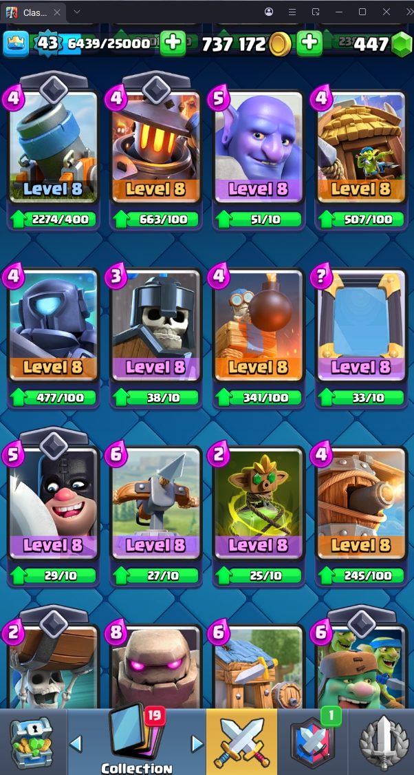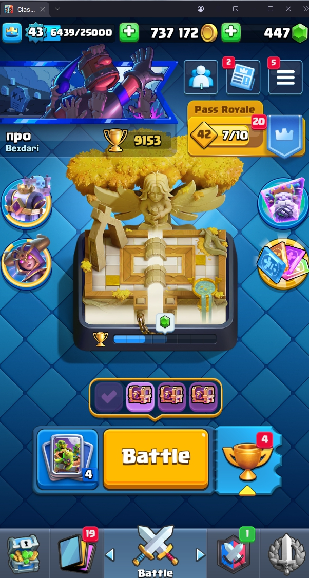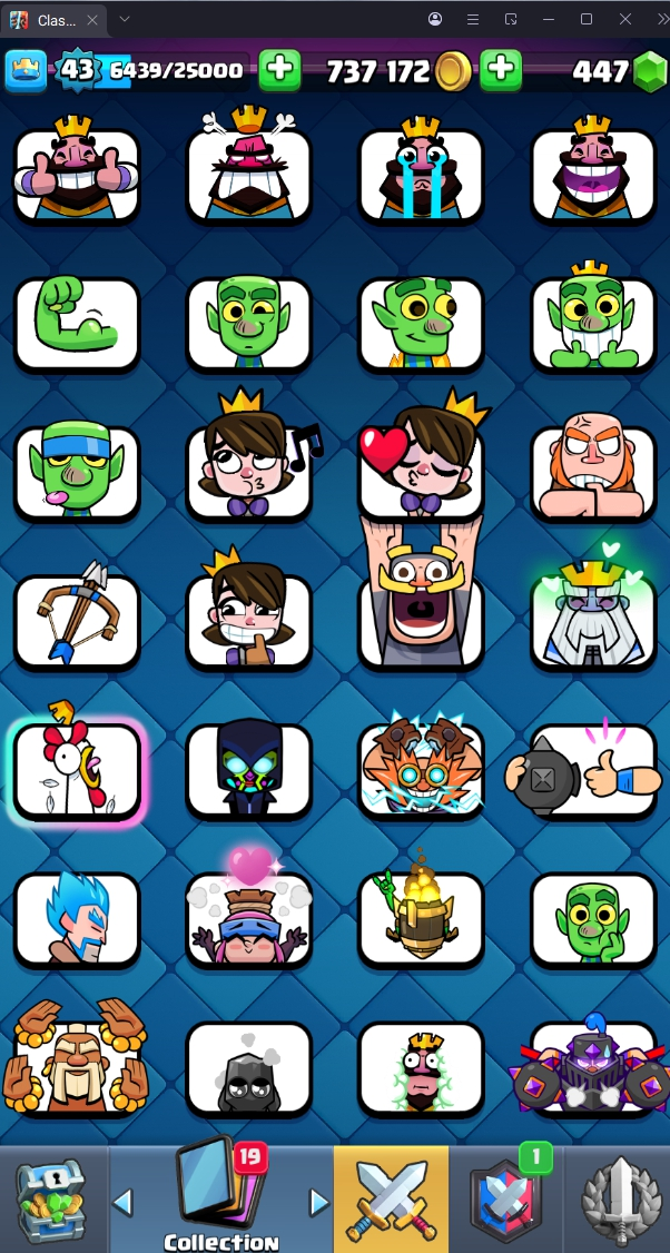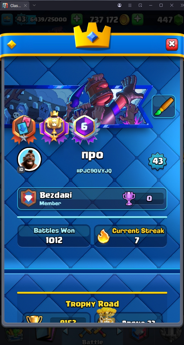 9153 TROPHY 🏆 43 LVL 💯 KT 14 👑 121 CARDS ♦️ 5 MAX CARDS 👑 2 ELITE CARDS 🔮 6 EVO 💯 EMOTE 49 🎭 #PJC90VYJQ ⸱ TAG ACCOUNT ♥️