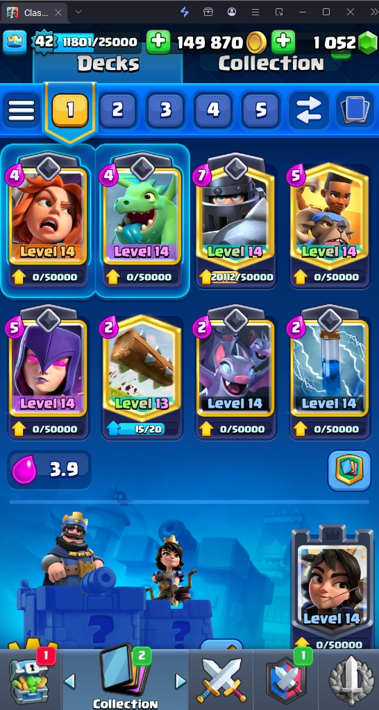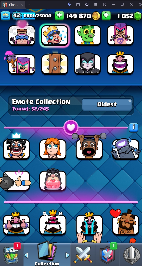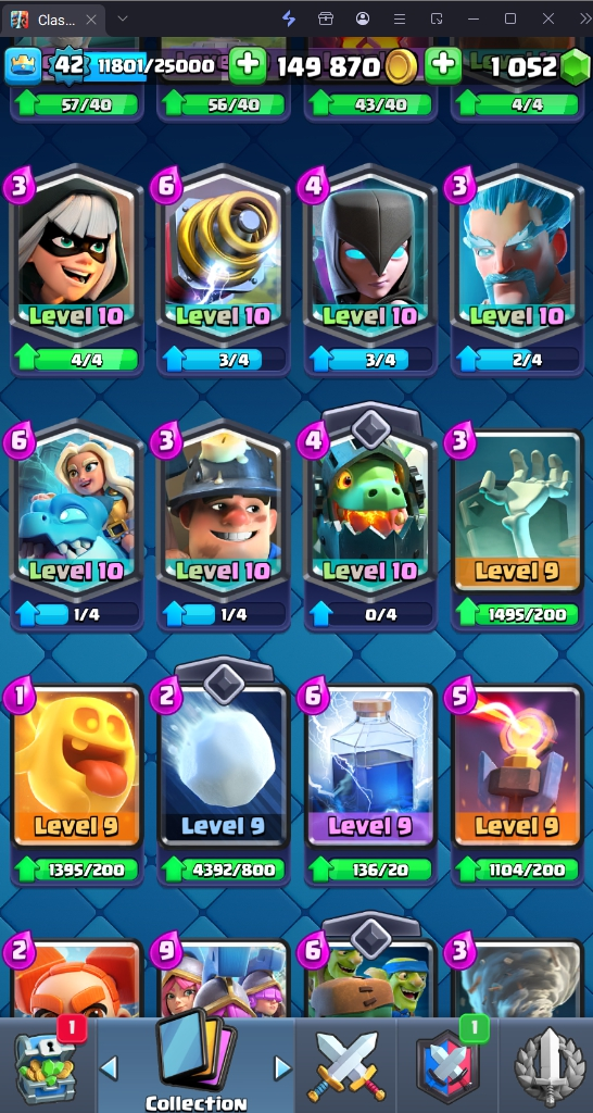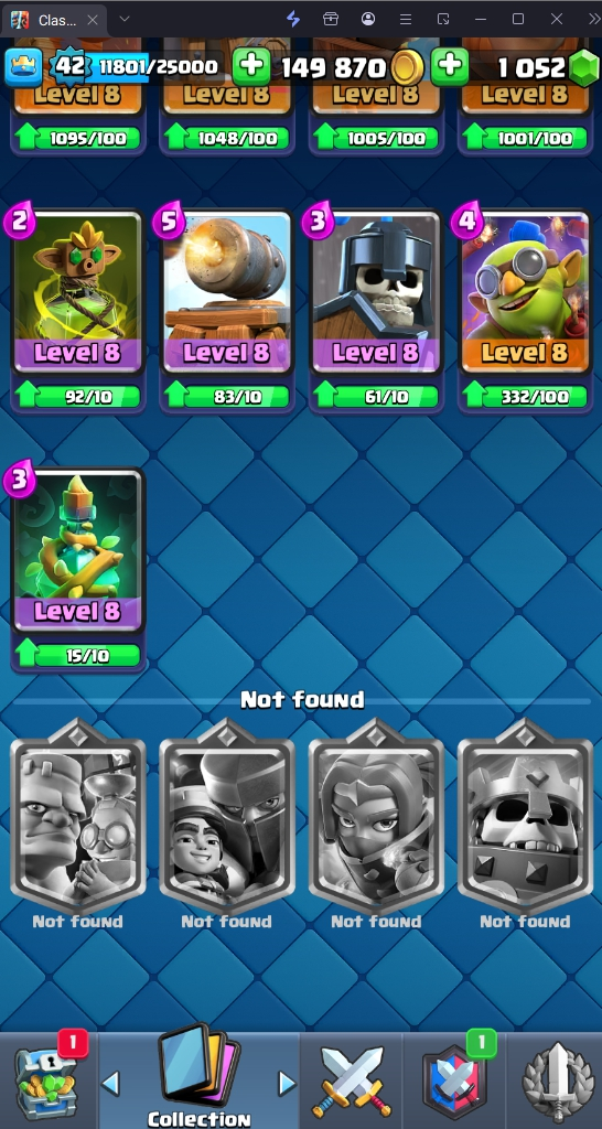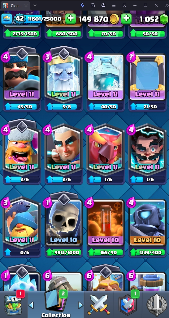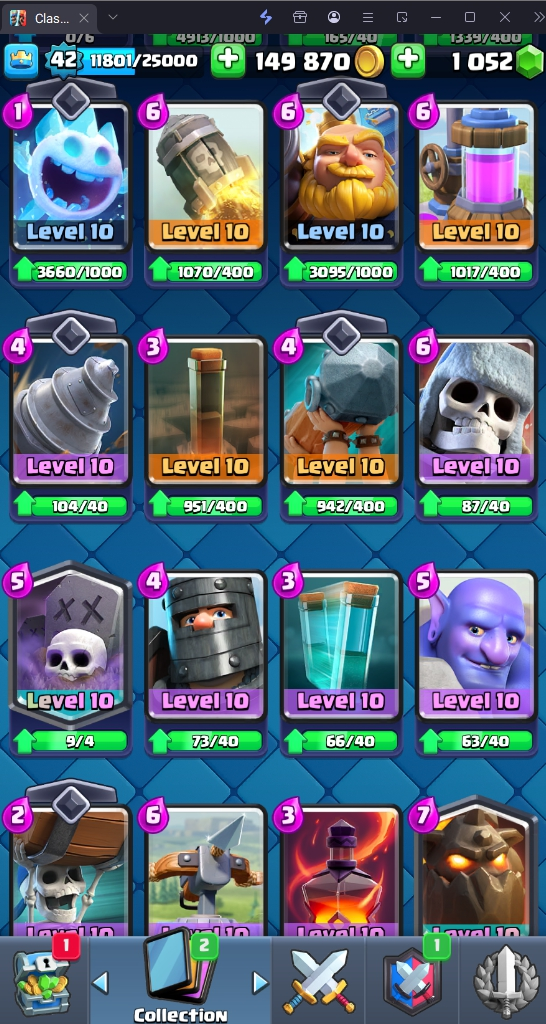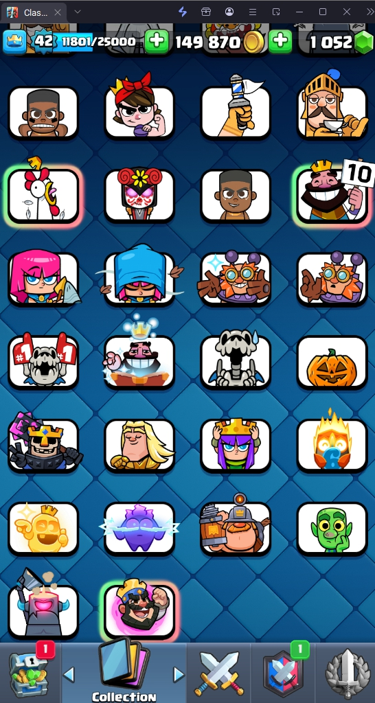 9160 TROPHIES 🏆 42 LVL 💯 KT 14 👑 117 CARDS ♦️ 15 MAX CARDS 👑 0 ELITE CARDS 🔮 1 EVO 💎 EMOTE 52 🎭 #8U98JQGVL ⸱ TAG ACCOUNT ⚙️ LEGENDARY ARENA • 9000 TROPHIES 💎