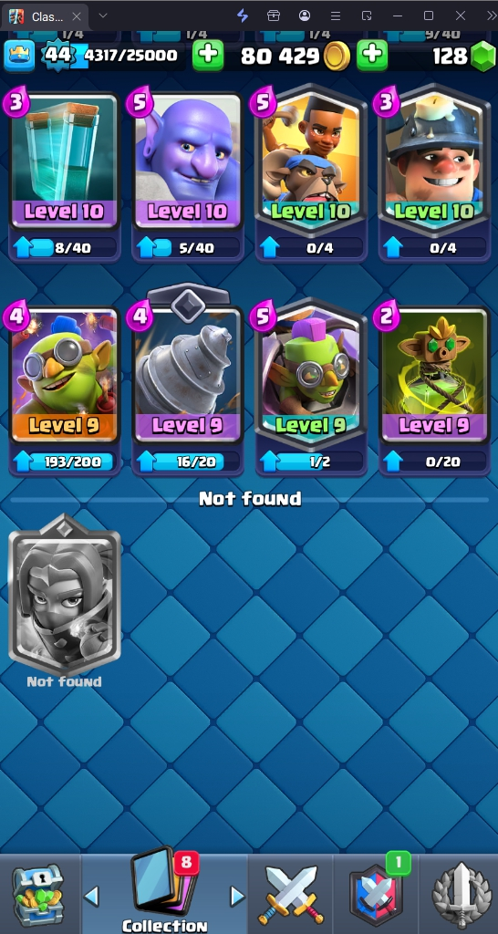 9207 TROPHIES 🏆 44 LVL 💯 KT 14 👑 120 CARDS ♦️ 6 MAX CARDS 👑 1 ELITE CARDS 🔮 2 EVO 💎 EMOTE 46 🎭 #8CVY28C8Q ⸱ TAG ACCOUNT ⚙️ LEGENDARY ARENA • 9000 TROPHIES 💎