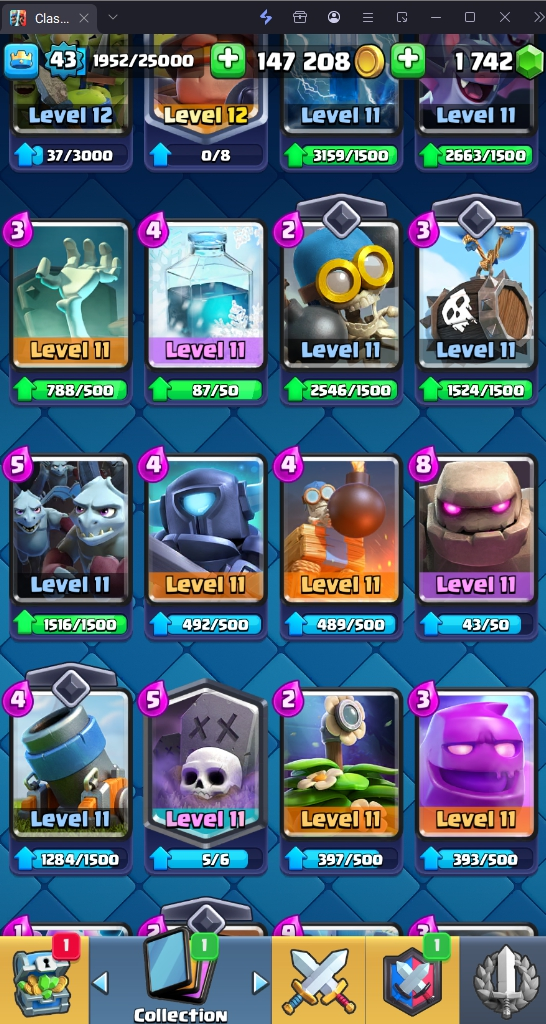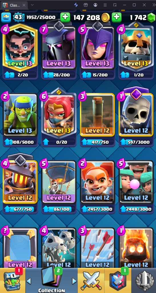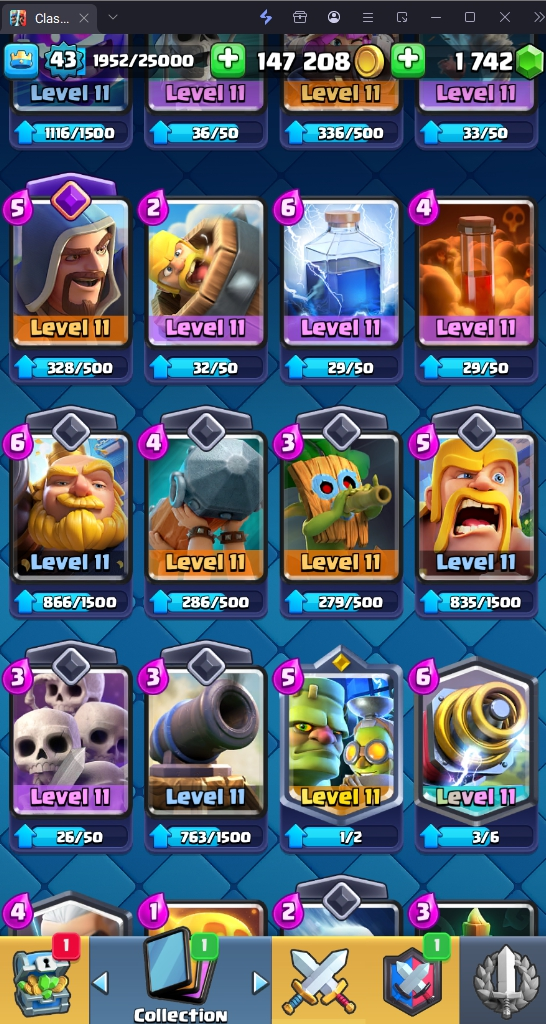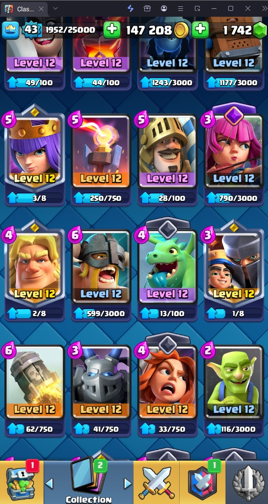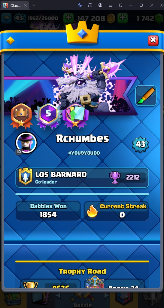 9636 TROPHIES 🏆 43 LVL 💯 KT 14 👑 120 CARDS ♦️ 8 MAX CARDS 👑 0 ELITE CARDS 🔮 6 EVO 💎 EMOTE 49 🎭 #YCU9Y8U00 ⸱ TAG ACCOUNT ⚙️ LEGENDARY ARENA • 9000 TROPHIES 💎