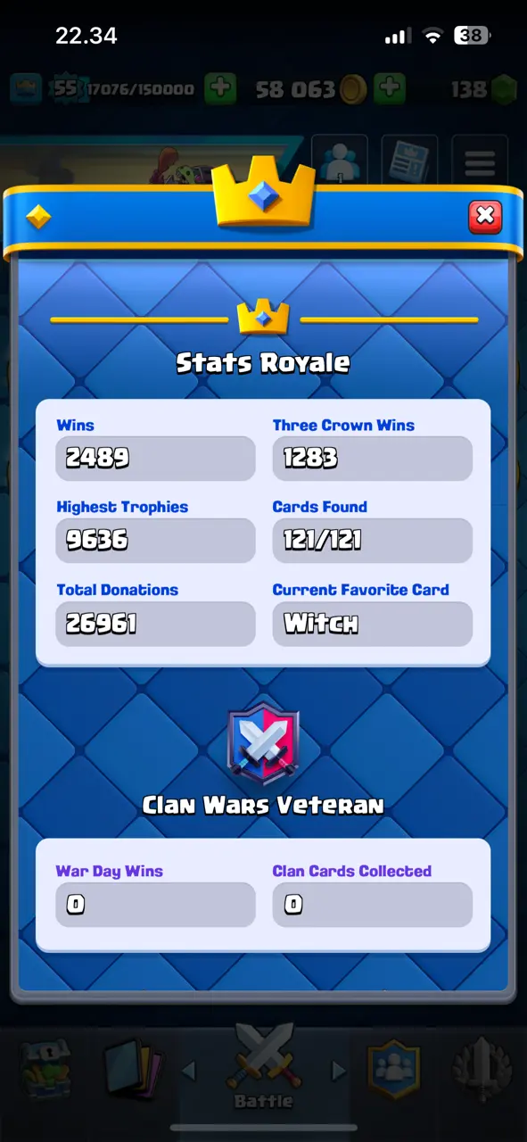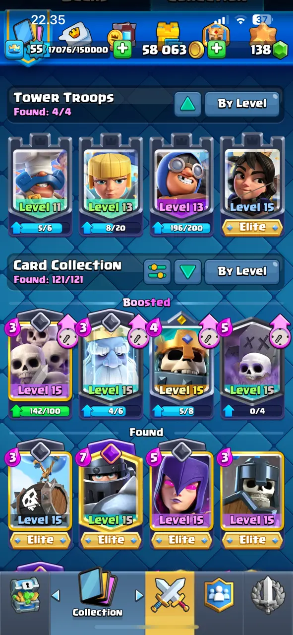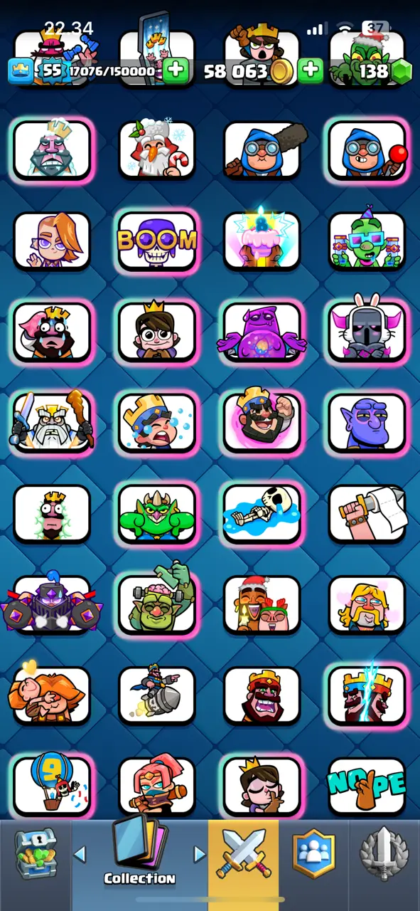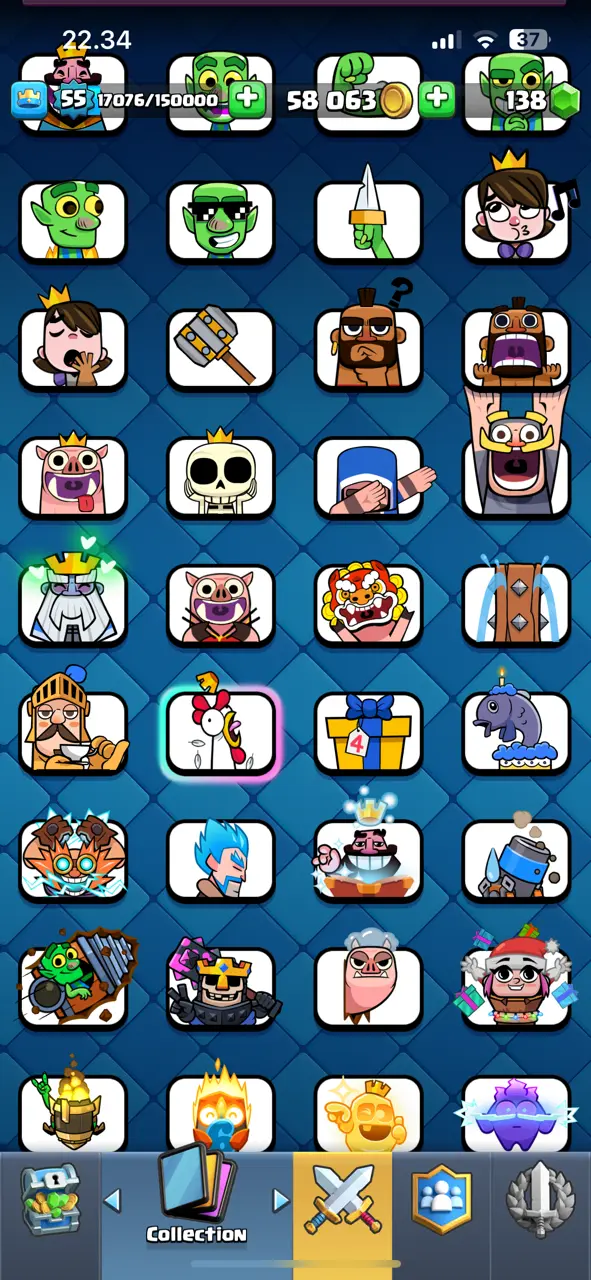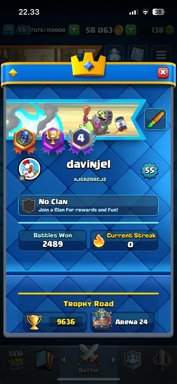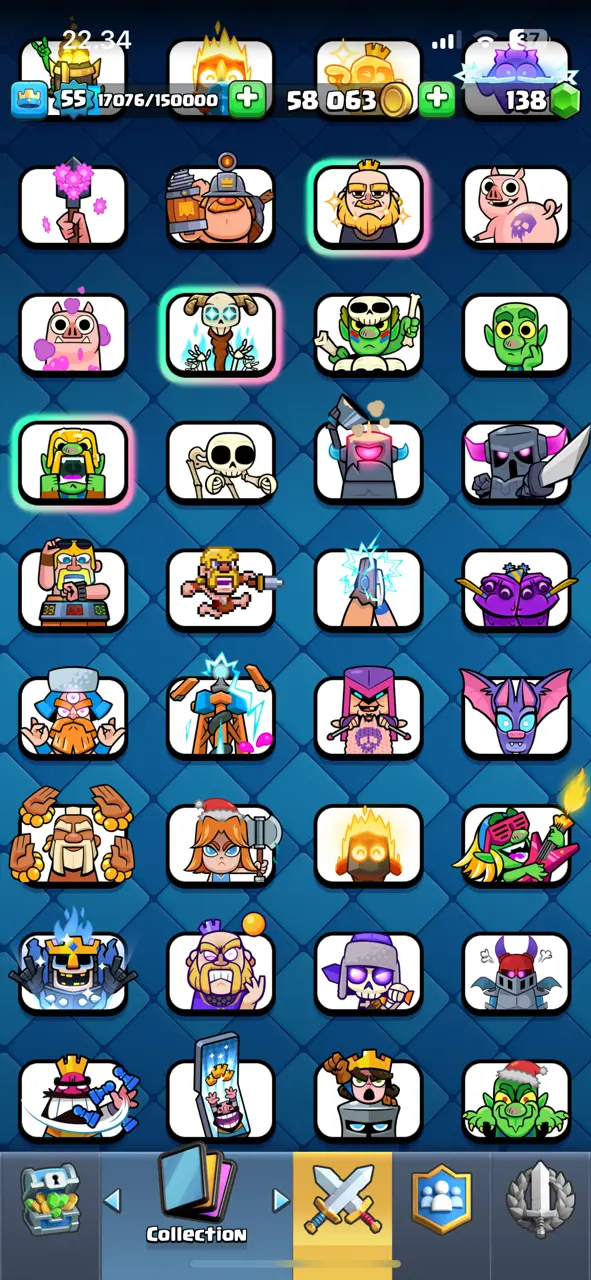 🔥 Amazing 🔥 CR Lv.55 🔥 Free Squad Buster MAX🔥 Arena 24 🔥 9636 Trophies 🔥 KT 15 🔥 11 Evo Cards 🔥 12 Max Cards & 8 Elites 🔥 120 Emotes 🔥 10 Tower Skins 🔥 [F2726] 🔥