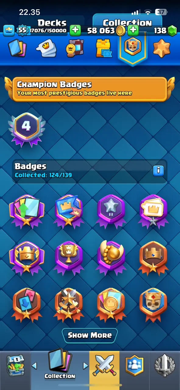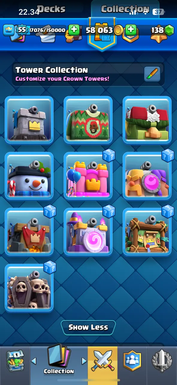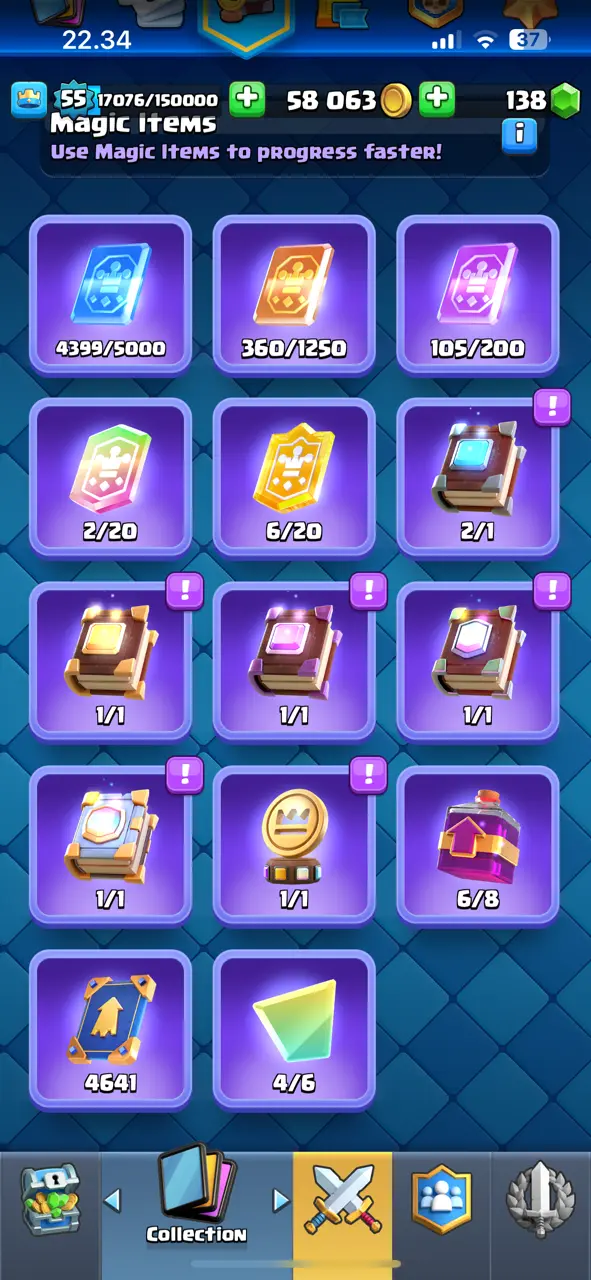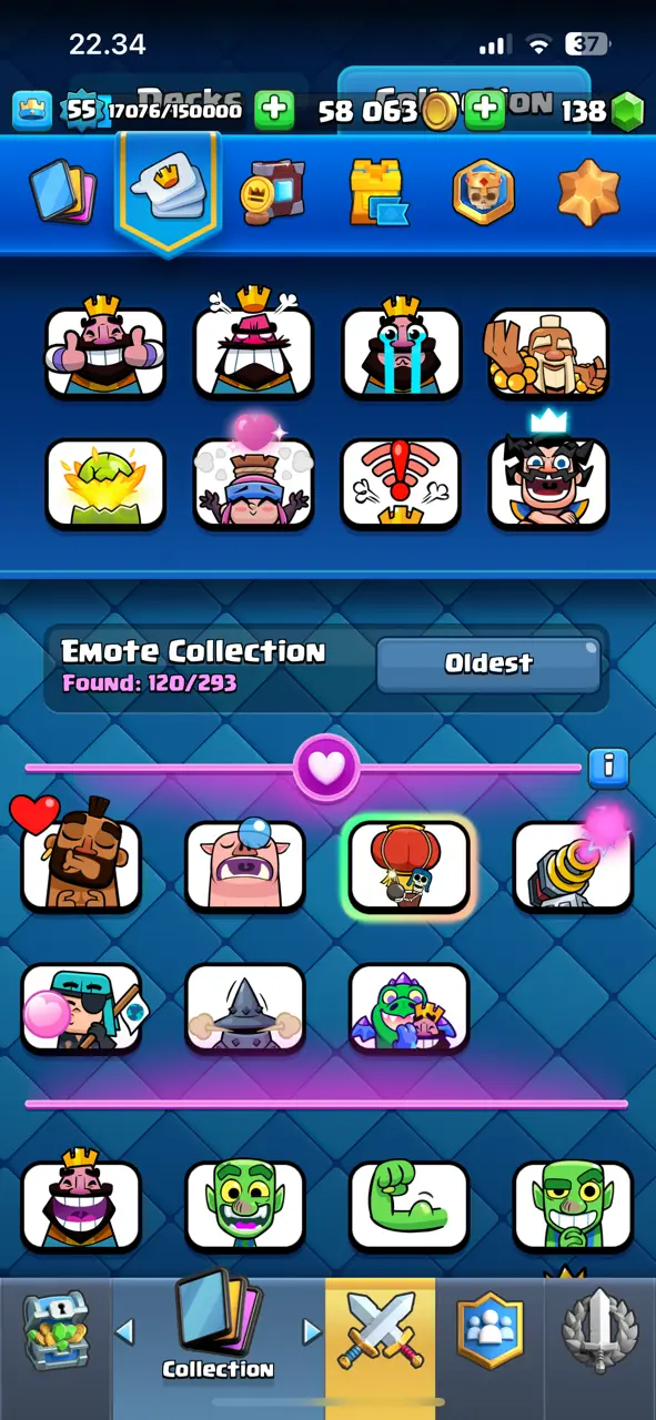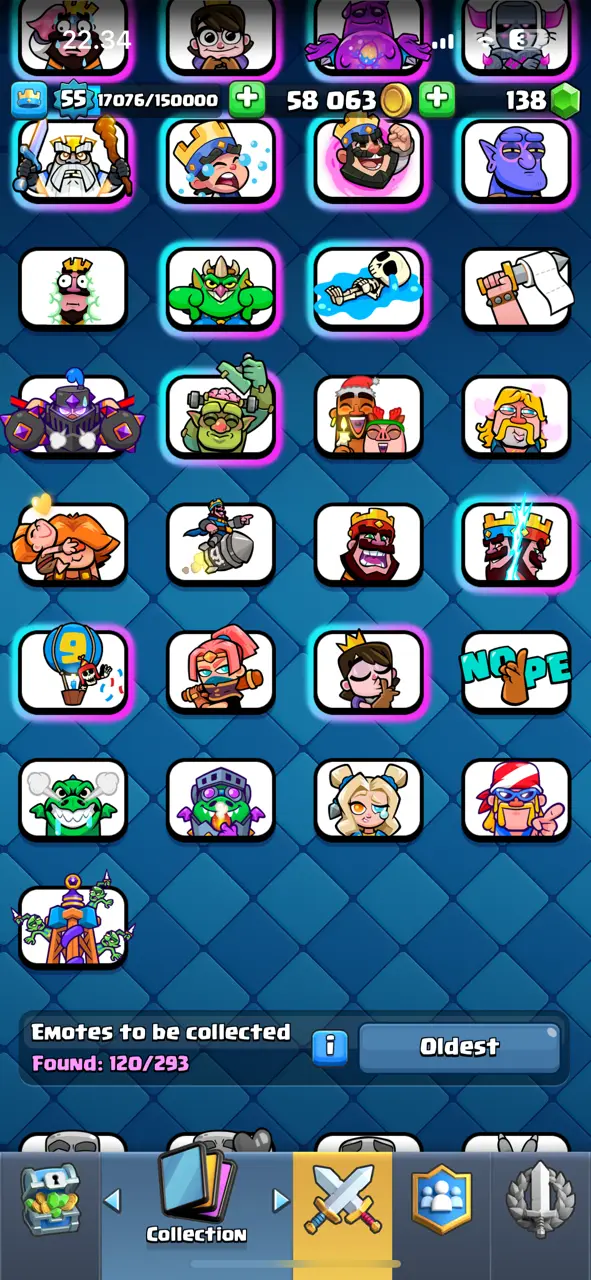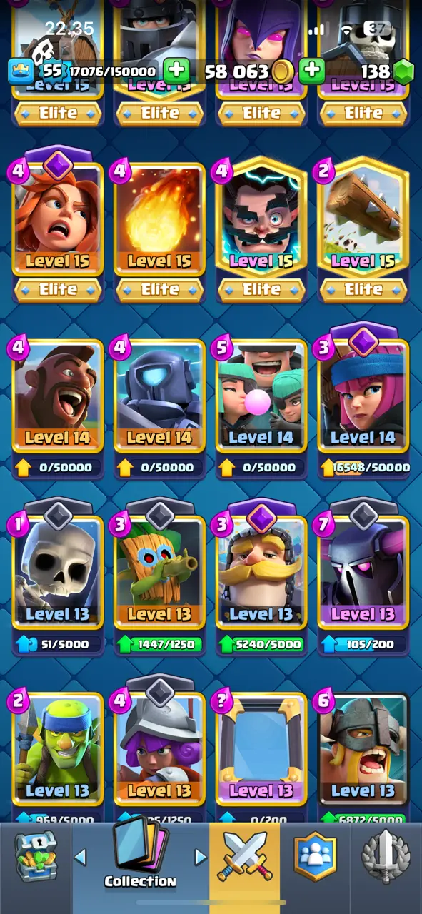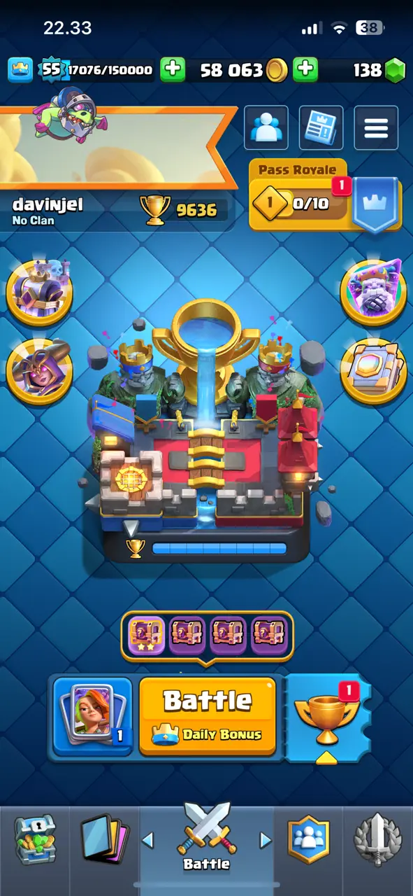 🔥 Amazing 🔥 CR Lv.55 🔥 Free Squad Buster MAX🔥 Arena 24 🔥 9636 Trophies 🔥 KT 15 🔥 11 Evo Cards 🔥 12 Max Cards & 8 Elites 🔥 120 Emotes 🔥 10 Tower Skins 🔥 [F2726] 🔥