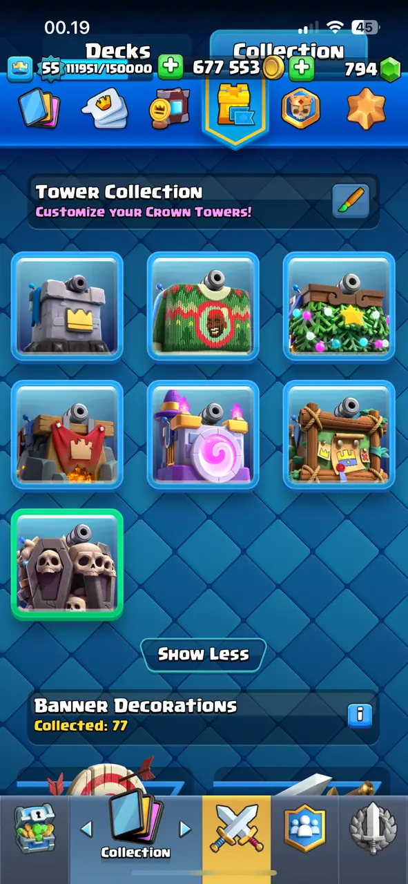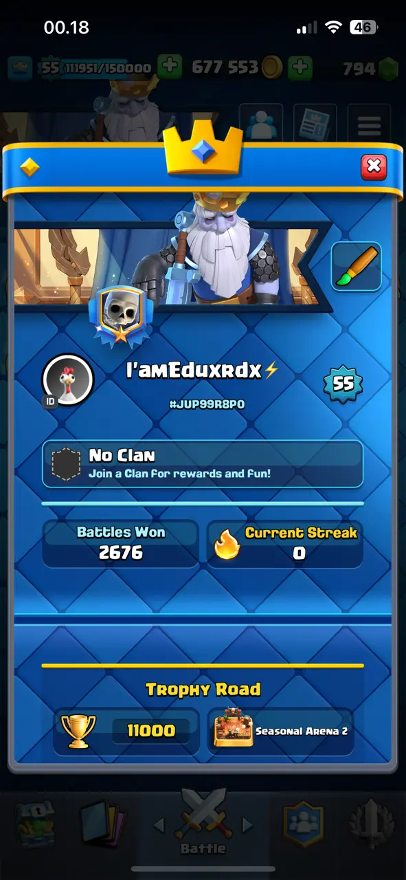 🔥 Awesome Cheapest 🔥 CR Lv.55 🔥 Seasonal Arena 2 🔥 11000 Trophies 🔥 KT 15 🔥 14 Evo Cards 🔥 31 Max Cards & 8 Elites 🔥 113 Emotes 🔥 7 Tower Skins 🔥 [F2795] 🔥