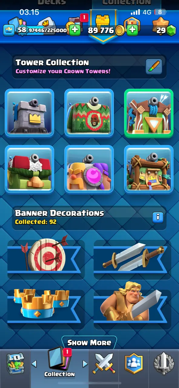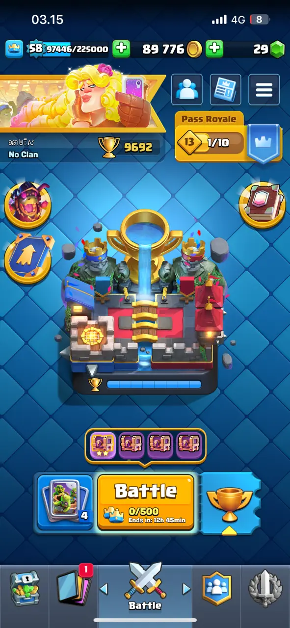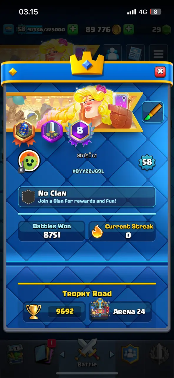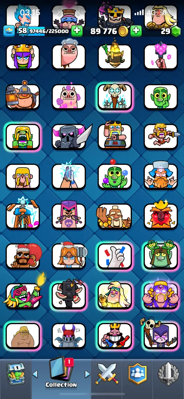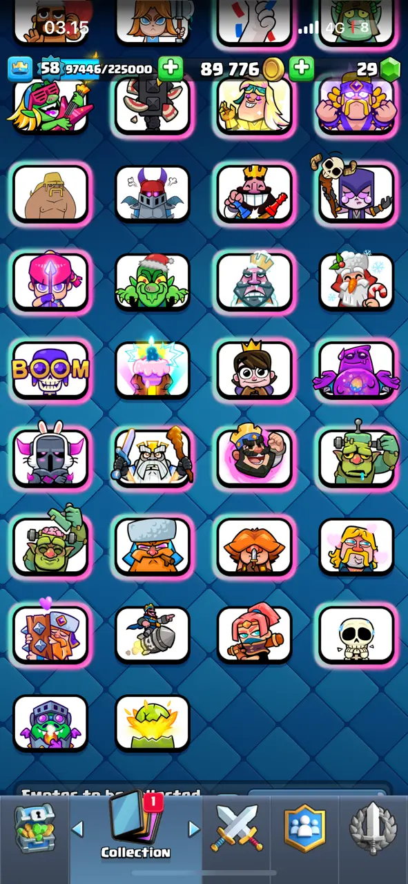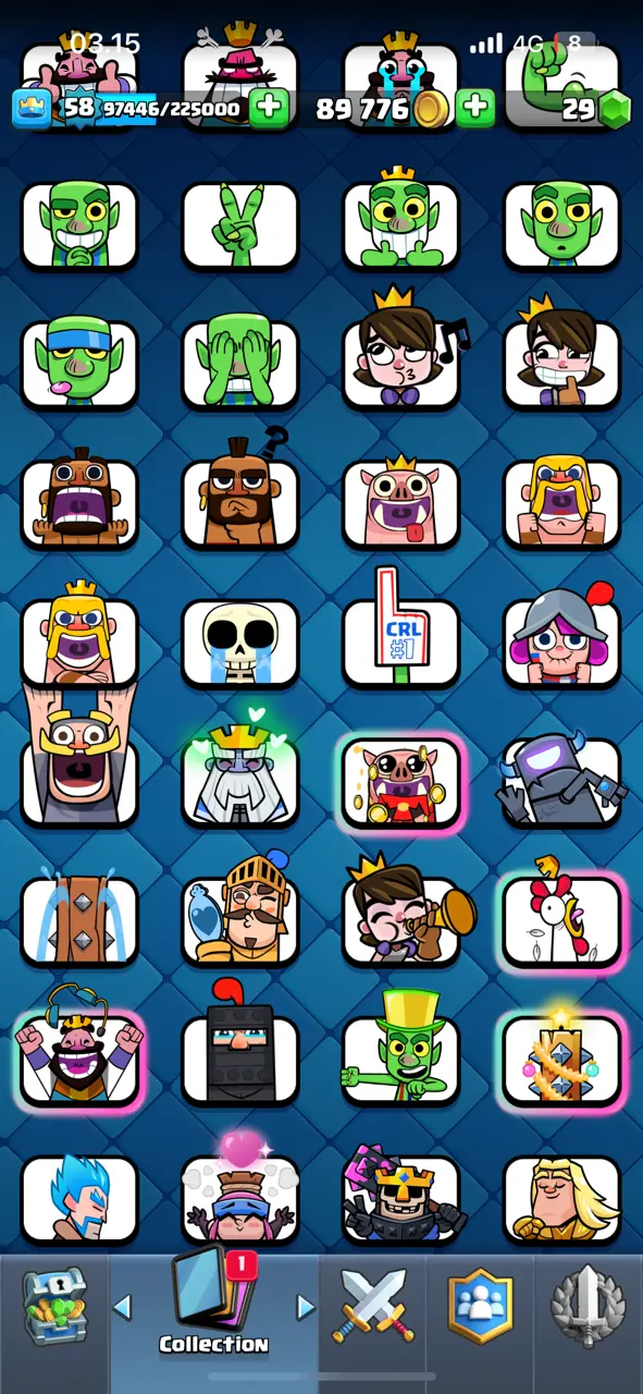 🔥 Awesome Rarest 🔥 CR Lv.58 🔥 Change Name ON 🔥 Arena 24 🔥 9692 Trophies 🔥 KT 15 🔥 10 Evo Card 🔥 53 Max Cards & 17 Elite 🔥 106 Emotes 🔥 6 Tower Skins 🔥 [F2521] 🔥