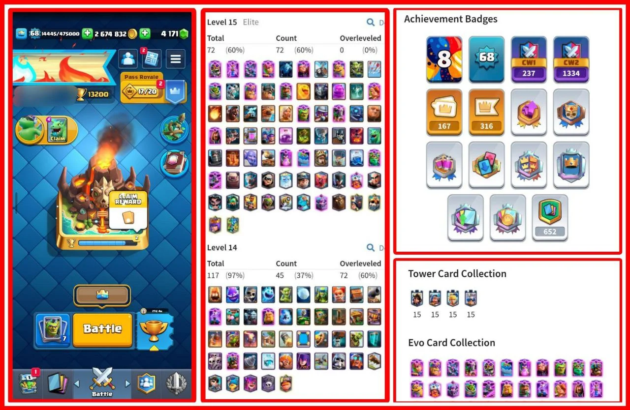 ❄️ (CHEAPEST) 🐉 72 ELITE CARDS 🌟 13200 TROPHIES 🏆 68 XP 🎯 22 EVOLUTIONS 😈 ULTIMATE CHAMPION 💪 FULLY MAXED ☃️ RARE S1 FIGHTING FISH 🐟 EMPEROR KING 👑 BOMBERLOON 💣 ROYAL GIANT ✨️ LAUGHING HOG 💰 GOLDEN PRINCE 🐏 13 TOWER SKINS 🏅 8 YEARS PLAYED 🐉