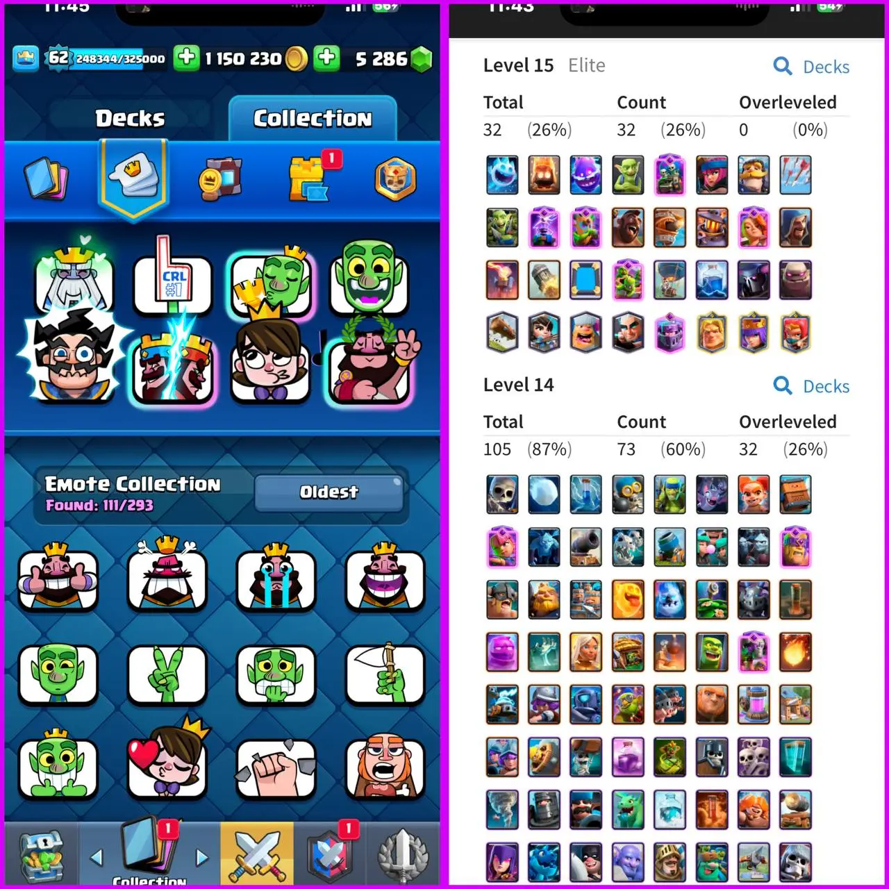 🔥 CR 62 EXP 🔥 RAREST EMOTE SET 🔥 GOBLIN TROPHY KISSING 🔥 ULTIMATE CHAMPION 🏆 GOBLIN SMILLING EMOTE 🔥 32 ELITE CARDS 🔥 105 MAX CARDS 🔥 111 EMOTES 🔥 1.5M GOLD 🥇 5K.GEMS 🥇 CHEAPEST IN MARKET