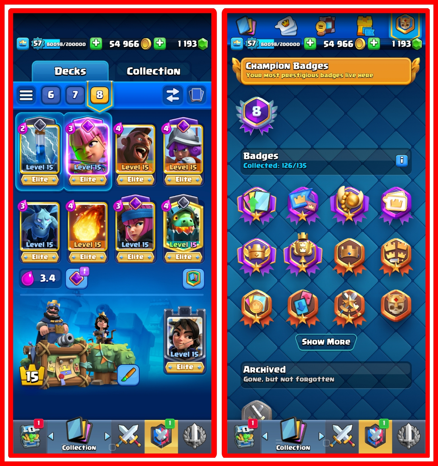 12 EVOLUTION CARDS✨11 ELITE CARDS😍LEVEL 57 🚀9800 TROPHIES🏆ARENA LEVEL 23 😍 KT LEVEL 15 ☠️🎁 FREE NAME CHANGE 💎☠️ CHEAP PRICE 💸 INSTANT DELIVERY ☑️💯 ANDROID & IOS ☑️🤝