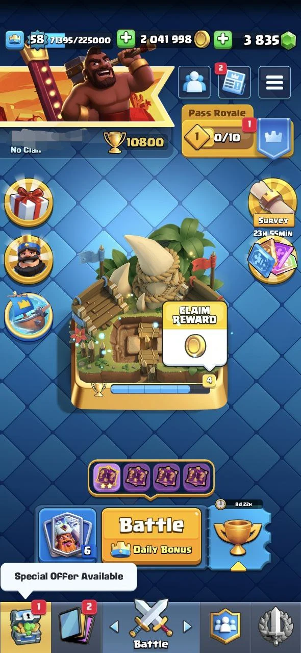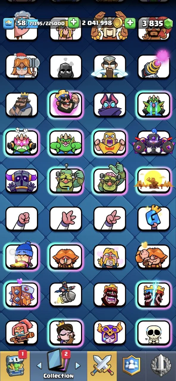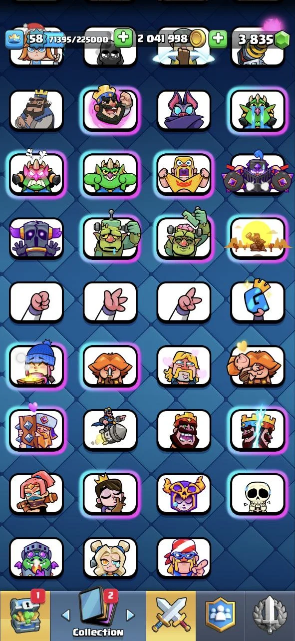 😍 EMPEROR KING ✨ KT 15 🔱 LVL 58 🏆 CUPS[10800] ✨ MAX CARDS [32] ✨ ELITE [17] ✨ EVO [11] ✨ LVL 14 [15] ✨ EMOTES [91] ✨ CARDS [121] ✨ FREE NAME CHANGE ✨10000% SAFE