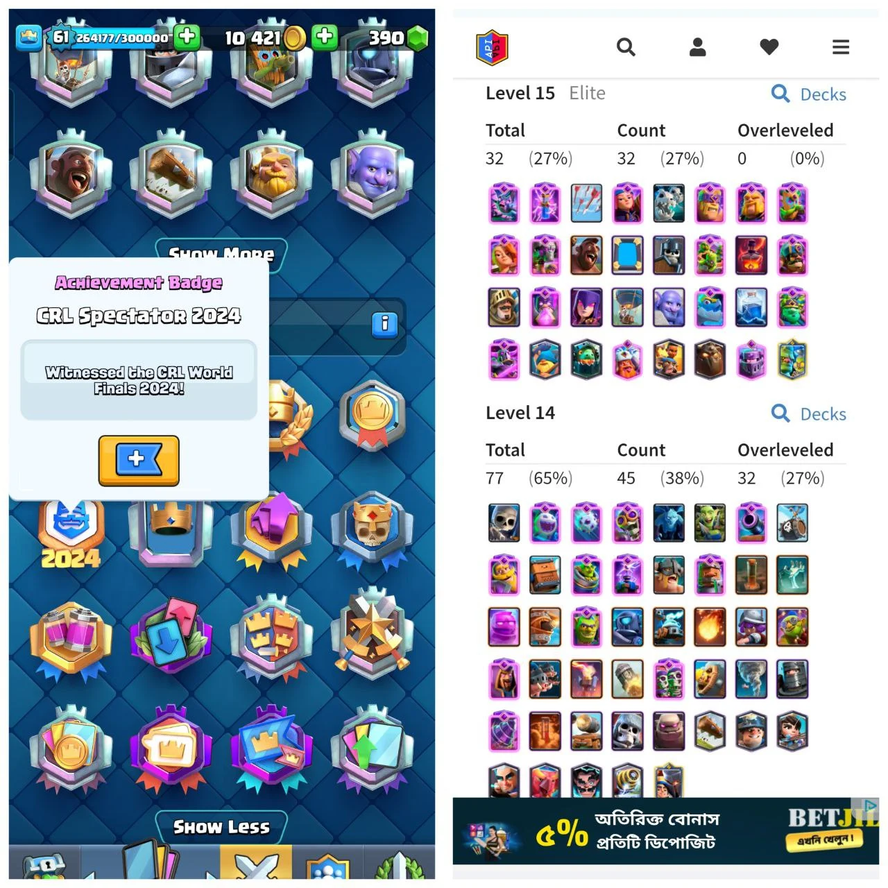 evolation 28 ♦️ crl badge+ultimate champ ♦️ level 61 [32 elite] 77 max card ♦️ emote 222 unique [hihiha+Ok+victory] 16 skin【203】