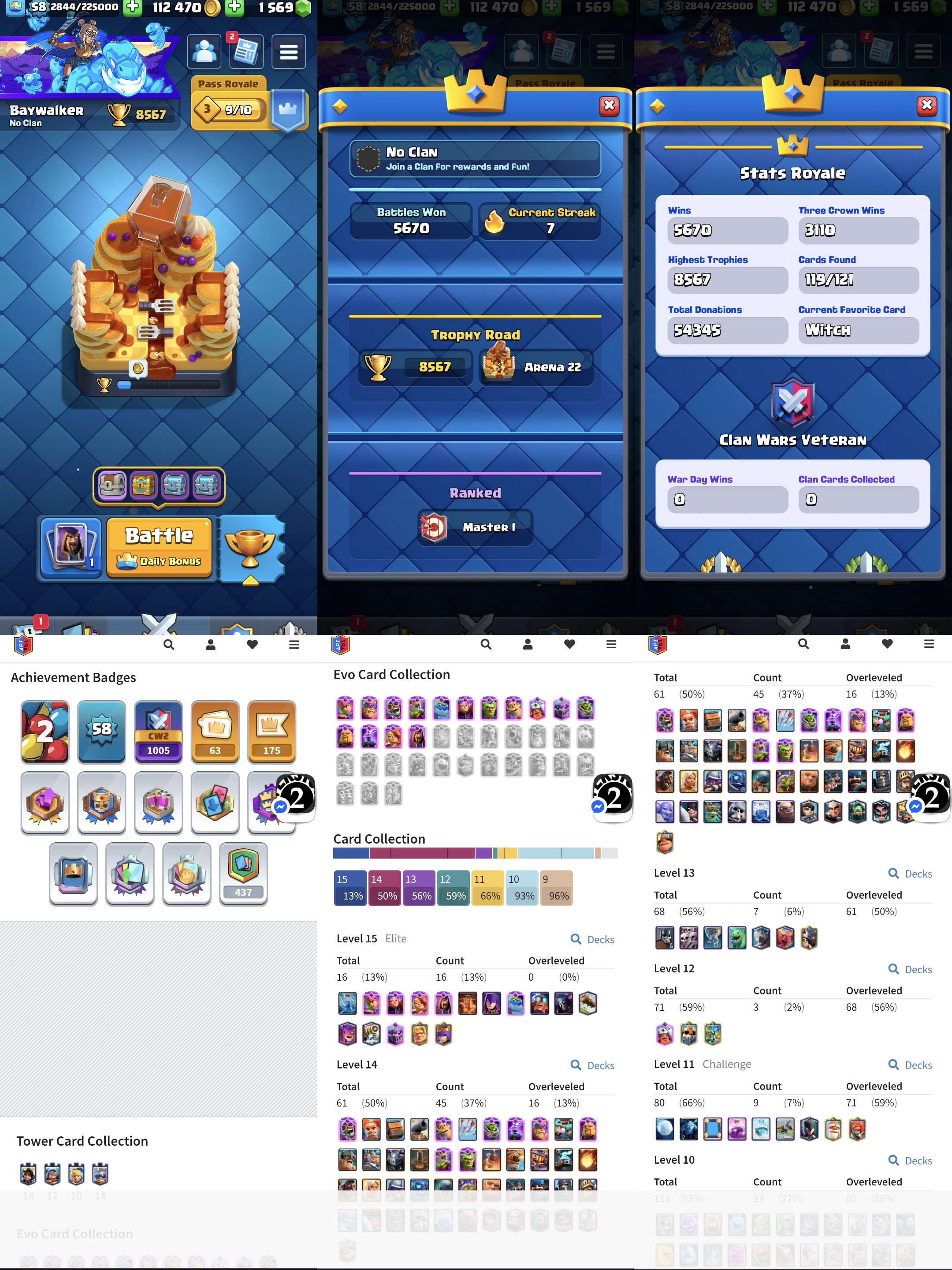 KT15 LVL58 | 118 CARD | 16 ELITE | 45 MAXED | ARENA 22 | 15 EVOLUTION | 8567 TROPHY | 63 EMOTE | FULL ACCESS
