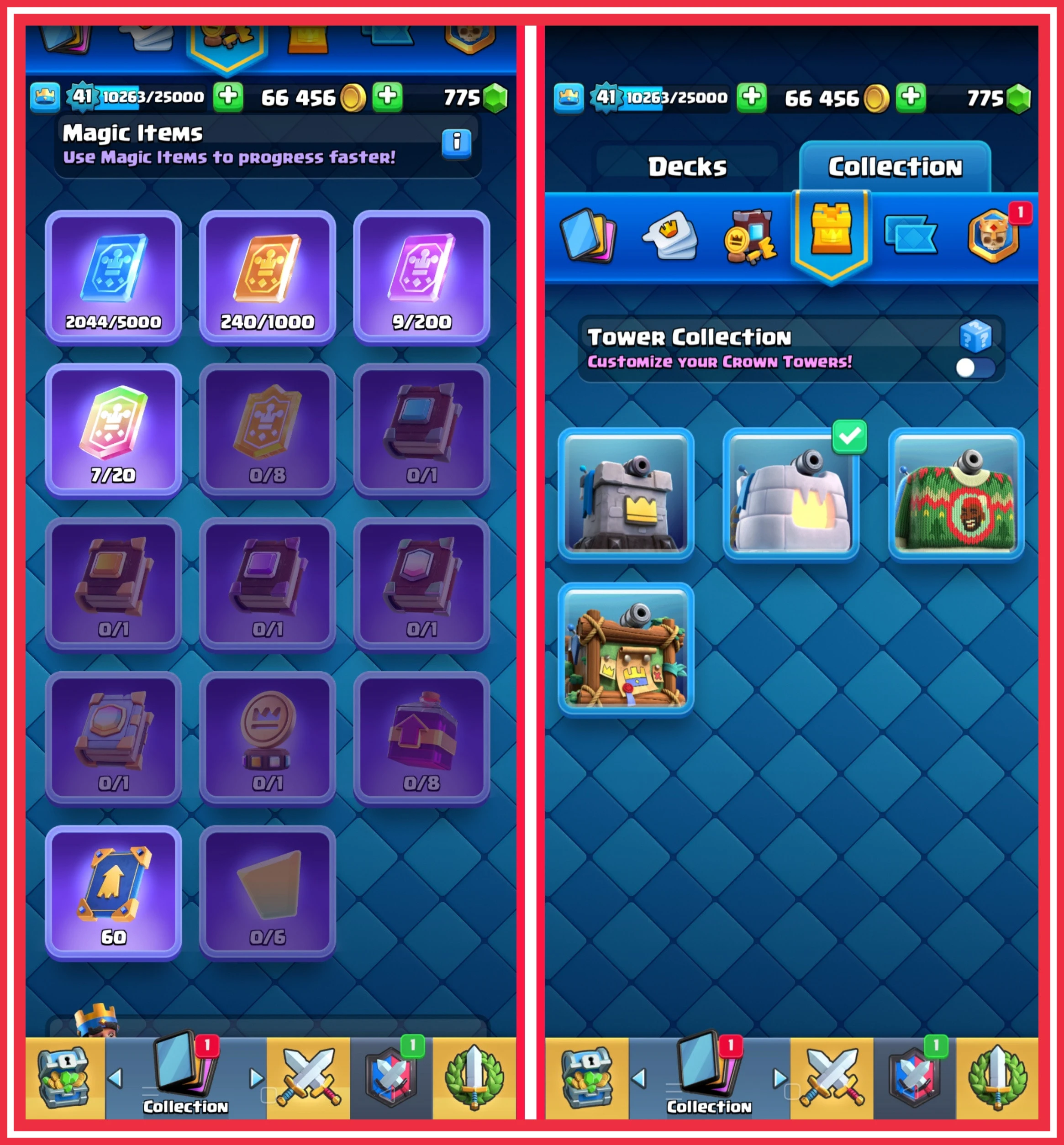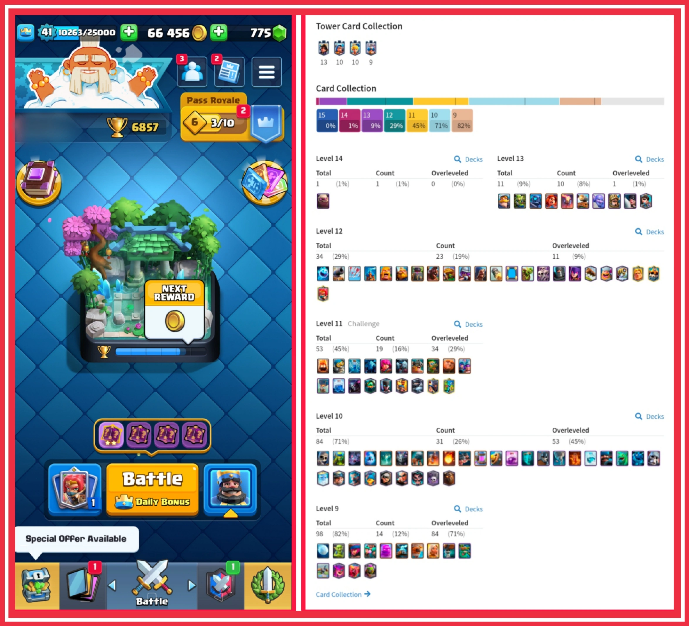LEVEL 41 | 6857 TROPHIES | ARENA LEVEL 18 | KT LEVEL 13 | 1 MAX CARD | 10 LEVEL 13 CARDS | NC 500 GEMS | ANDROID & IOS ⸱ C104
