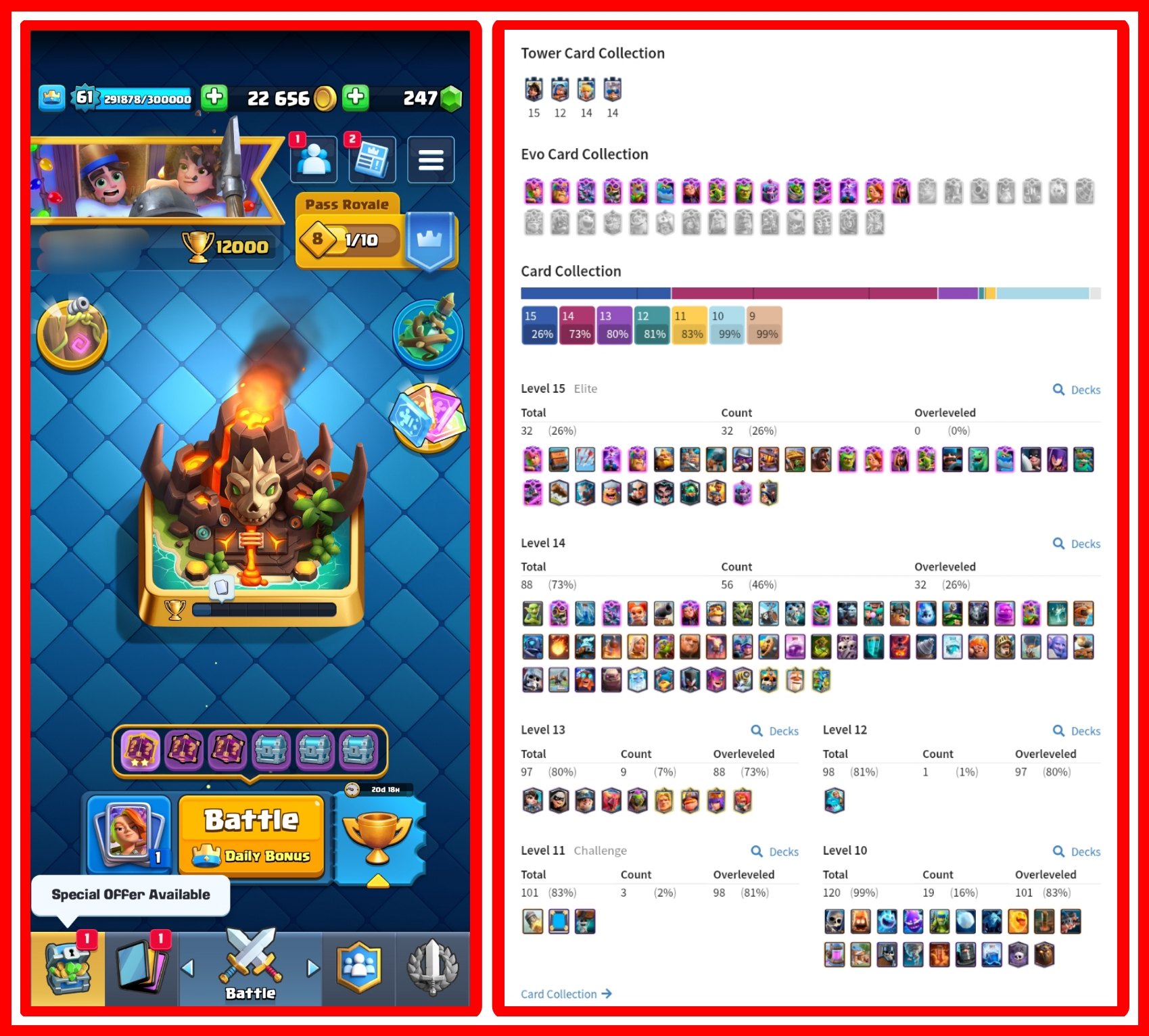🎁 LEVEL 61 🚀 15 EVOLUTION CARDS 🤩🌟 32 ELITE CARDS 😍💗 88 MAX CARDS 😍 ❤️ 12000 TROPHIES🏆 SEASONAL ARENA LEVEL 3 😍💗 KT LEVEL 15 ☠️💫💖 FREE NAME CHANGE 💎☠️ CHEAP PRICE 💸 INSTANT DELIVERY ☑️💯 ANDROID & IOS ☑️🤝