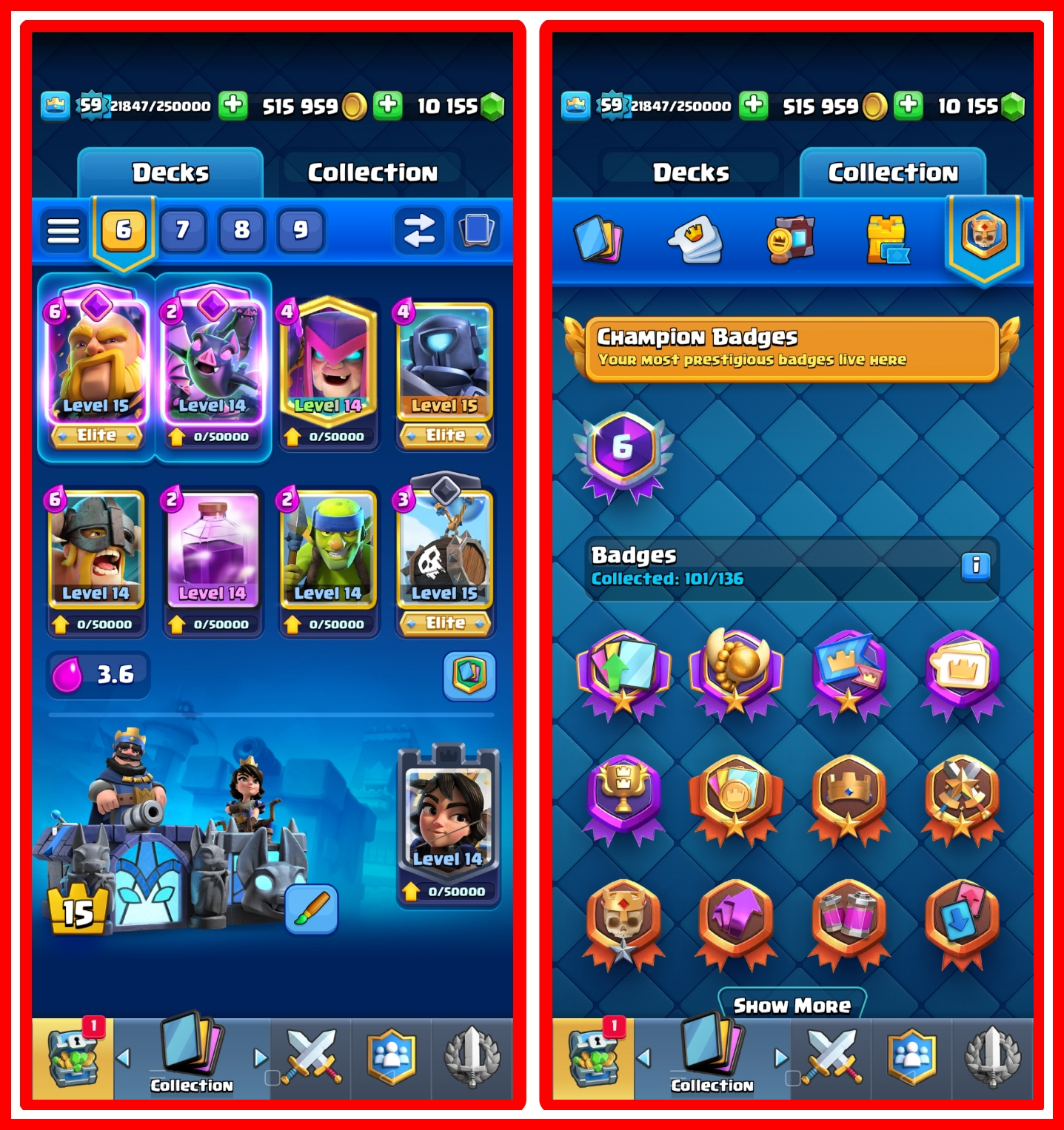 [MAX ACCOUNT ]🤯10K GEMS💎12 EVOLUTION CARDS🤩100 MAX CARDS✨LEVEL 59 🚀9500 TROPHIES🏆ARENA LEVEL 24💗KT LEVEL 15☠️15 ELITE CARDS😍NAME CHANGE 1000💎CHEAP PRICE 💸 INSTANT DELIVERY☑️ANDROID & IOS ☑️