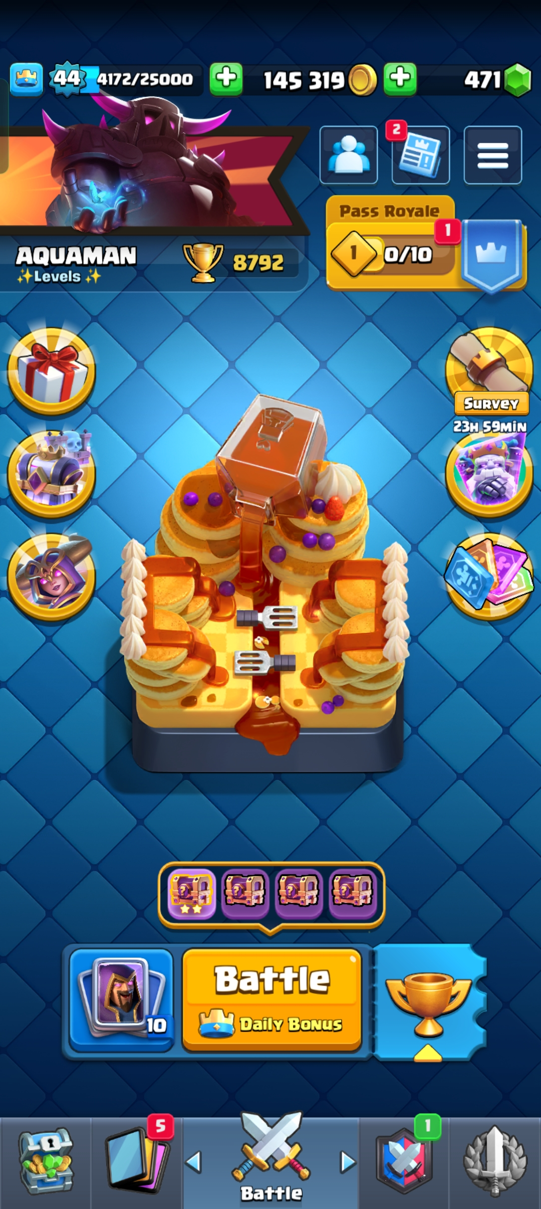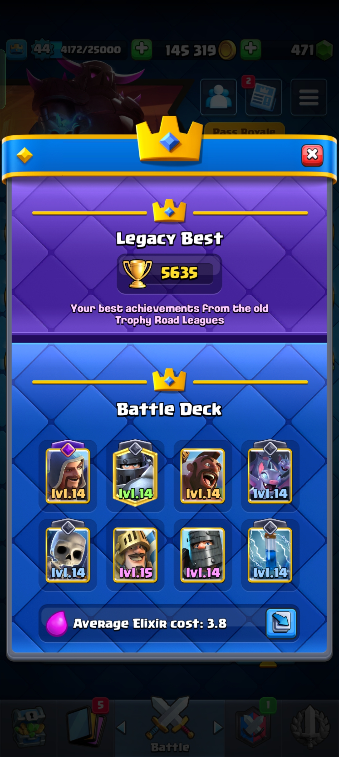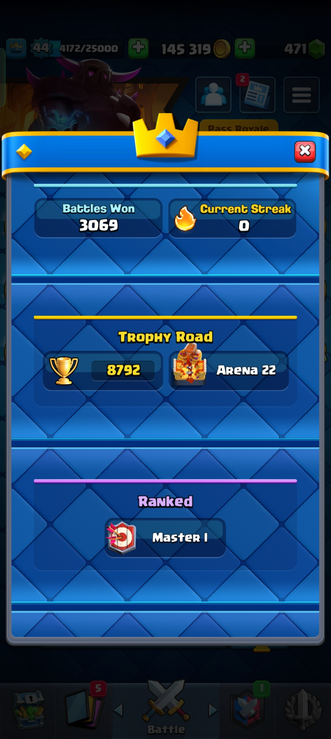 🏆 OP 8792 TROPHY 🏆 13 MAX CARDS ✨️ 4 EVO CARDS ❤️🔥 1 ELITE CARDS ✨ KING TOWER LEVEL 14 🥳 ARENA 22 💥 44 LEVEL 🎊  56 EMOTES 🎊 119 CARDS UNLOCKED 🔓 INSTANT DELIVERY 🚚