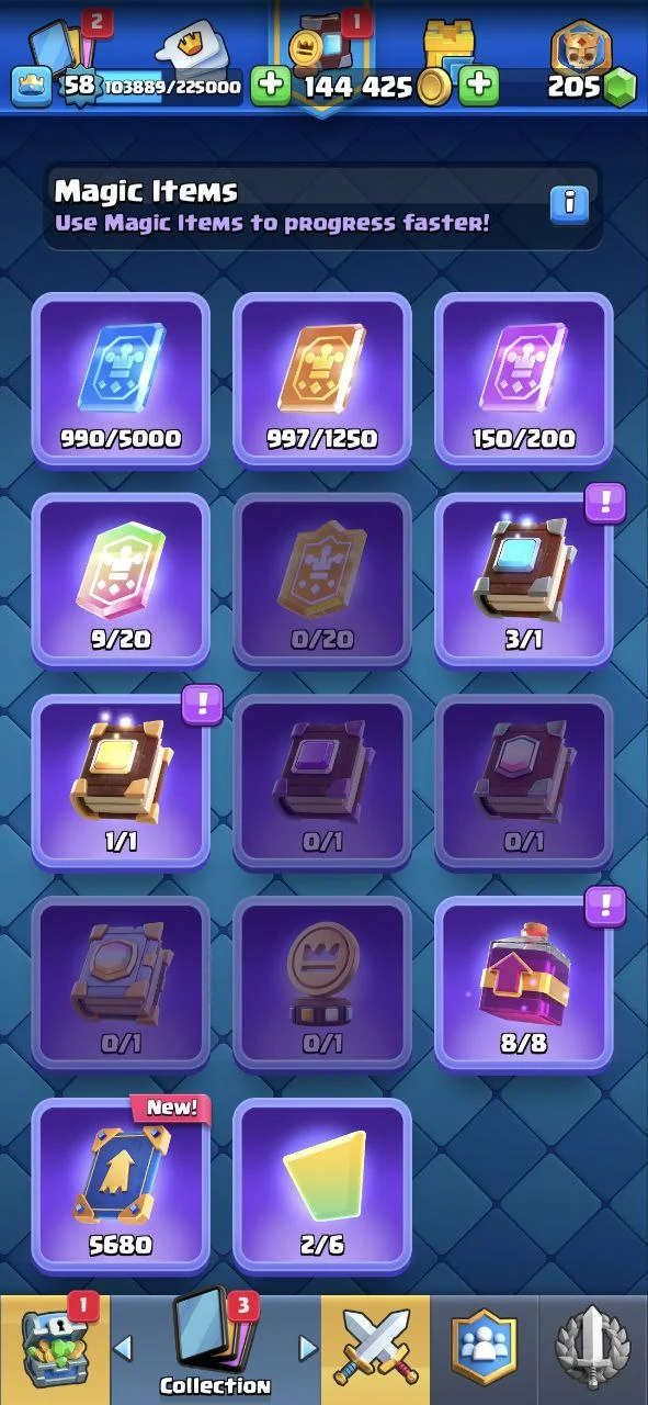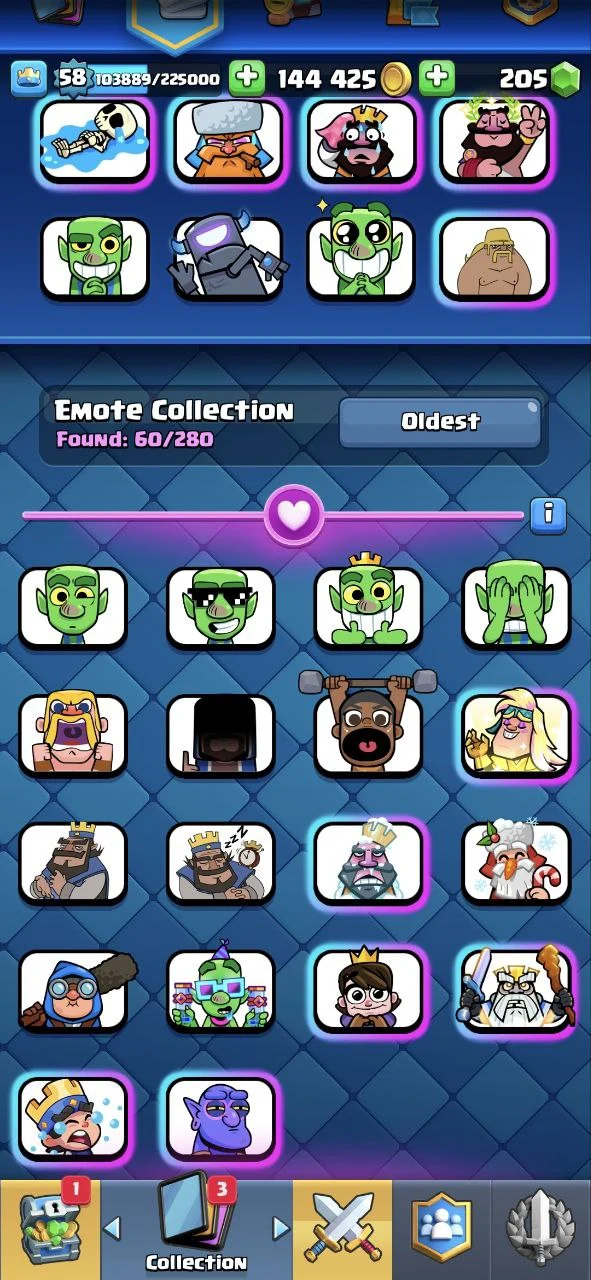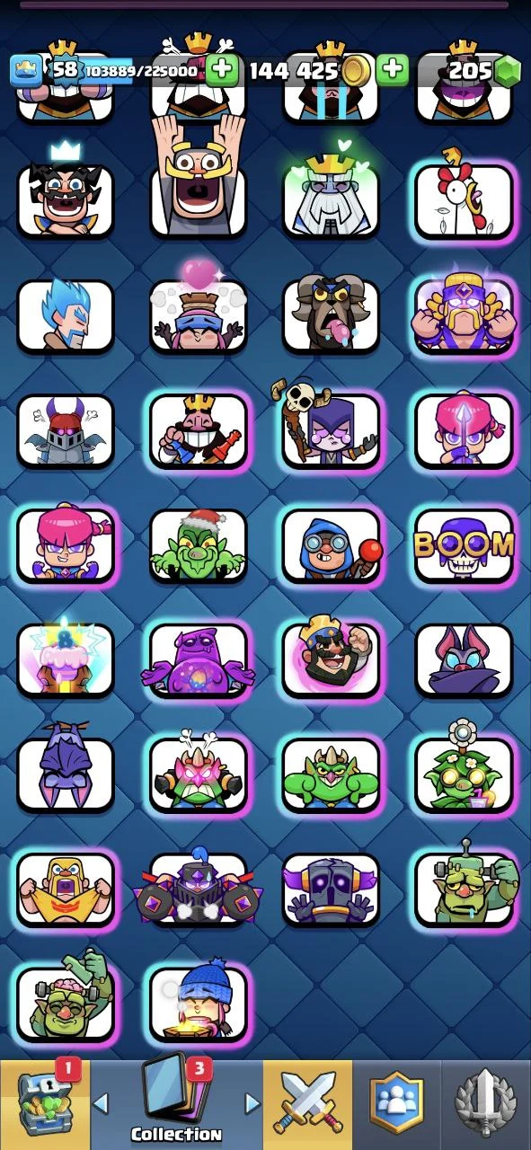 RARE EMPEROR KING✨ KT 15 🔱 LVL 58🏆 CUPS[9000] ✨ MAX CARDS [44] ✨ ELITE [17] ✨ EVO [9] ✨ LVL 14 [27] ✨ EMOTES [60] 🔱 CARDS [118] ✨ 10000% SAFE