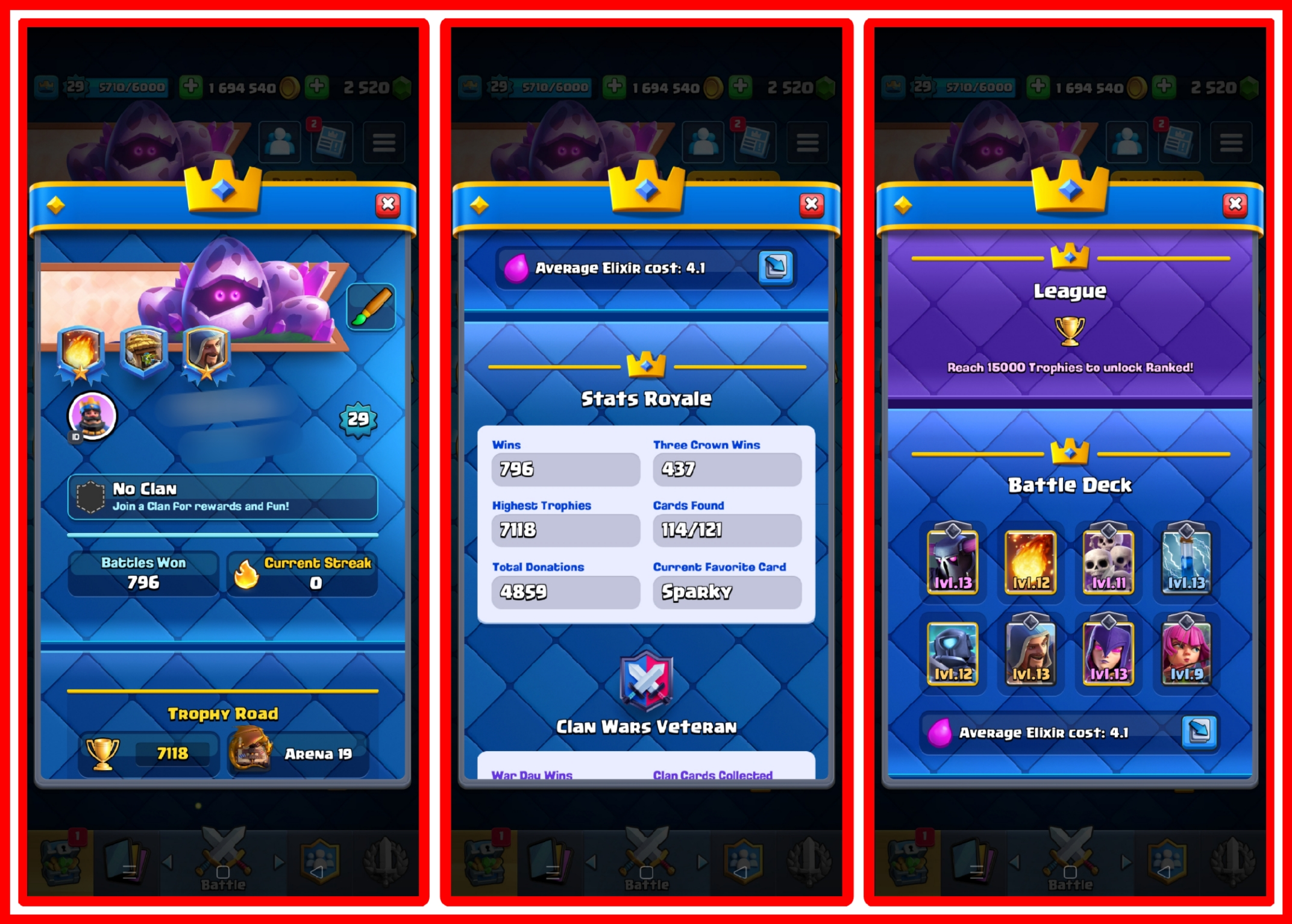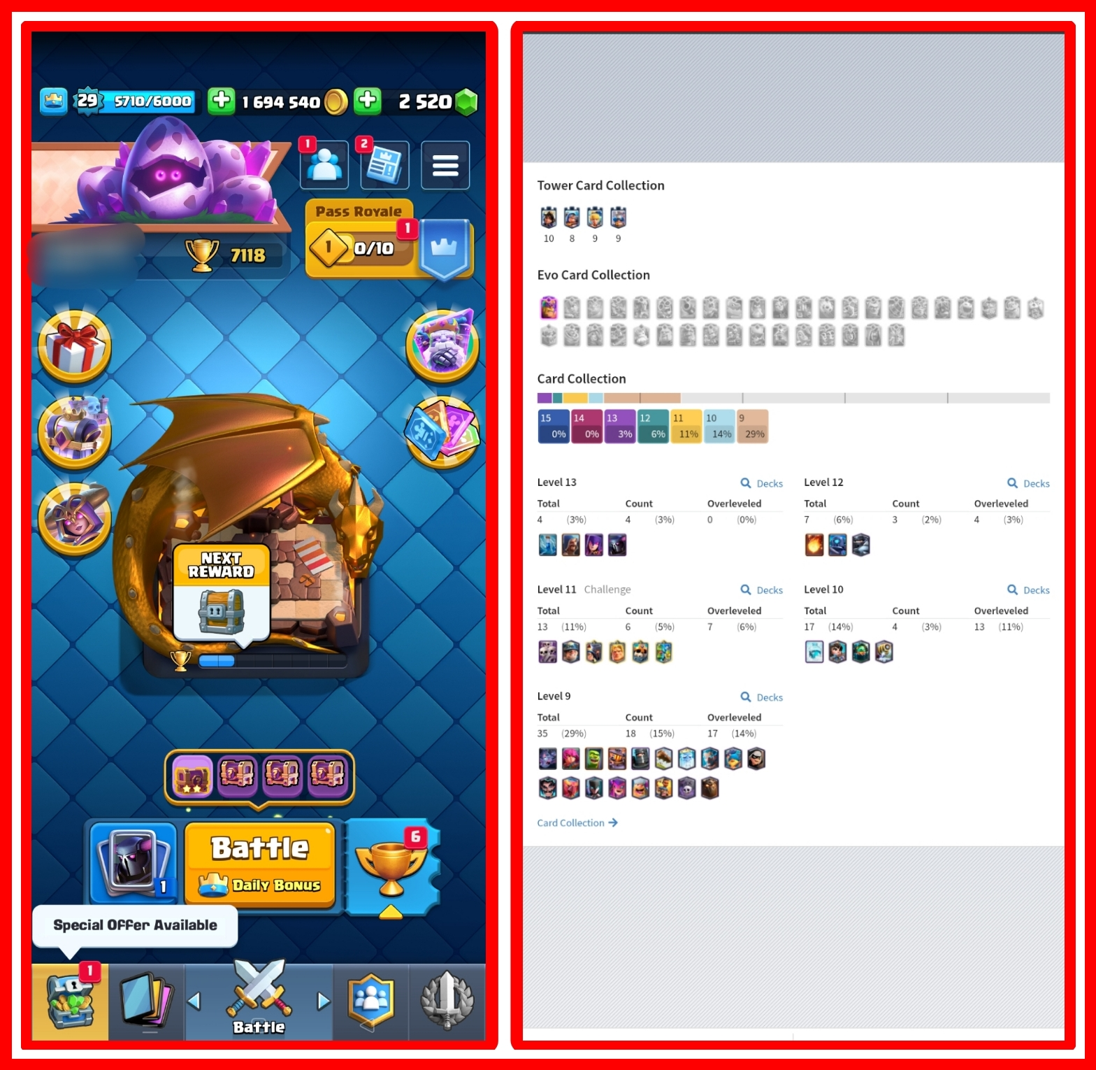 [VALUE DEAL] 💗 LEVEL 29 🎁😍 7118 TROPHIES ❤️ ARENA LEVEL 19 🤩 KT LEVEL 10 💖 1 EVOLUTION CARDS 💕 4 LVL 13 CARDS 😍 7 LVL 12 CARDS 😍 CHEAP PRICE 💸 INSTANT DELIVERY 💯 ANDROID & IOS ☑️