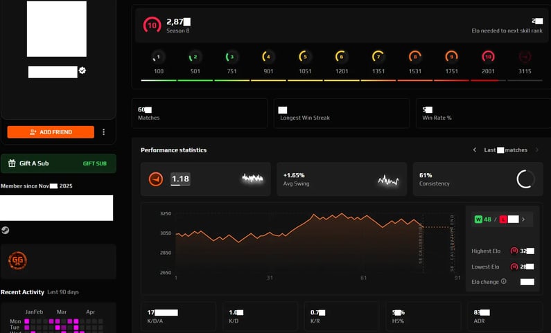 På samma sätt fokuserar ESEA på seriöst tävlingsspel och följer spelare med RWS (Round Win Shares)—ett mått på hur mycket du bidrar till ditt lags vinster. ESEA arrangerar ligor, rankinglistor och turneringar och erbjuder en direkt väg för dem som vill mäta sig mot de bästa.