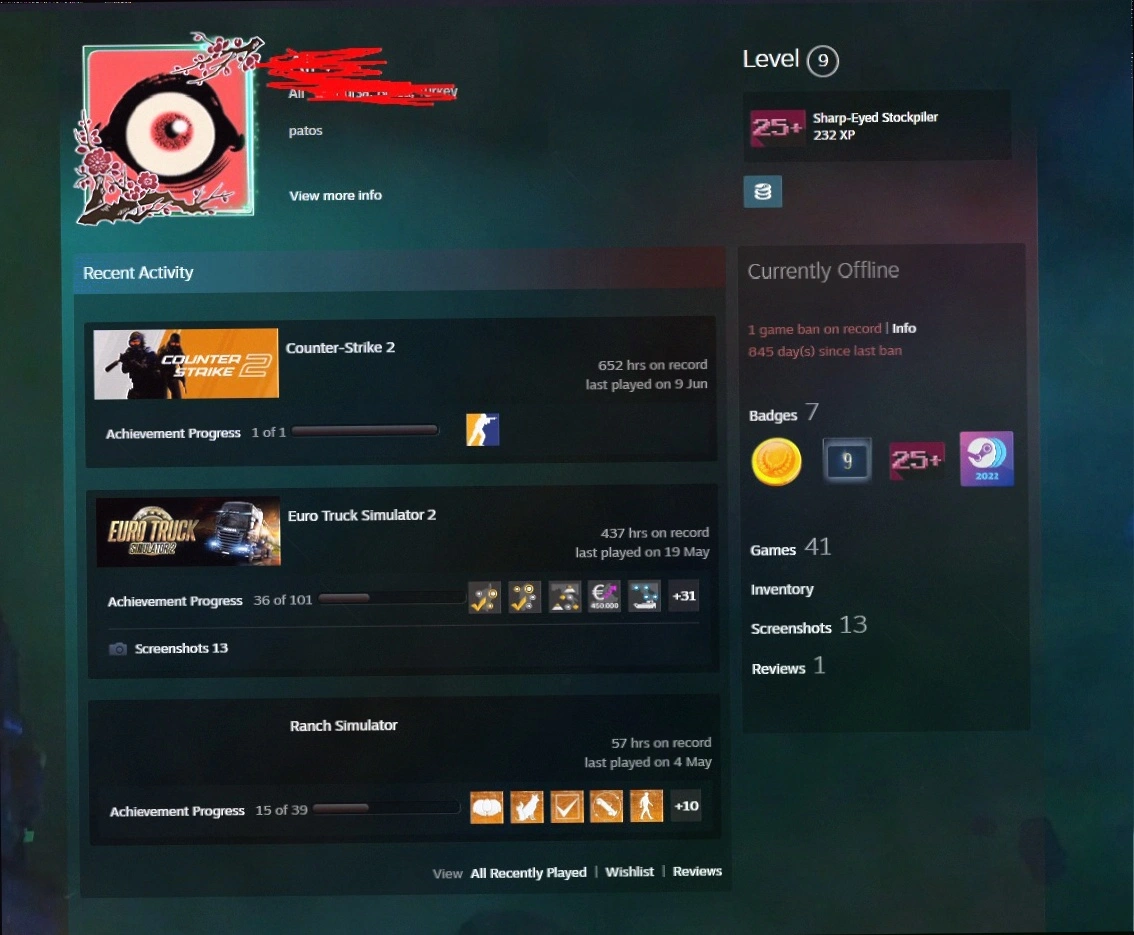 40 GAMES STEAM+PRIME CS2 (5 MEDALS ⸱ 2019+2018 Service+CS:GO+5 Year+Loyalty)+652 Hours+9y. old+9 LVL+PREMIER READY Global ⸱ VAC BAN RUST #ACC-160599