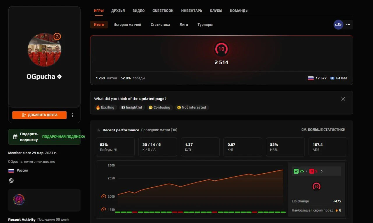 FACEIT ⸱ Level 10 Account ⸱ 2514 ELO ⸱ Faceit Plus ⸱ Native Mail