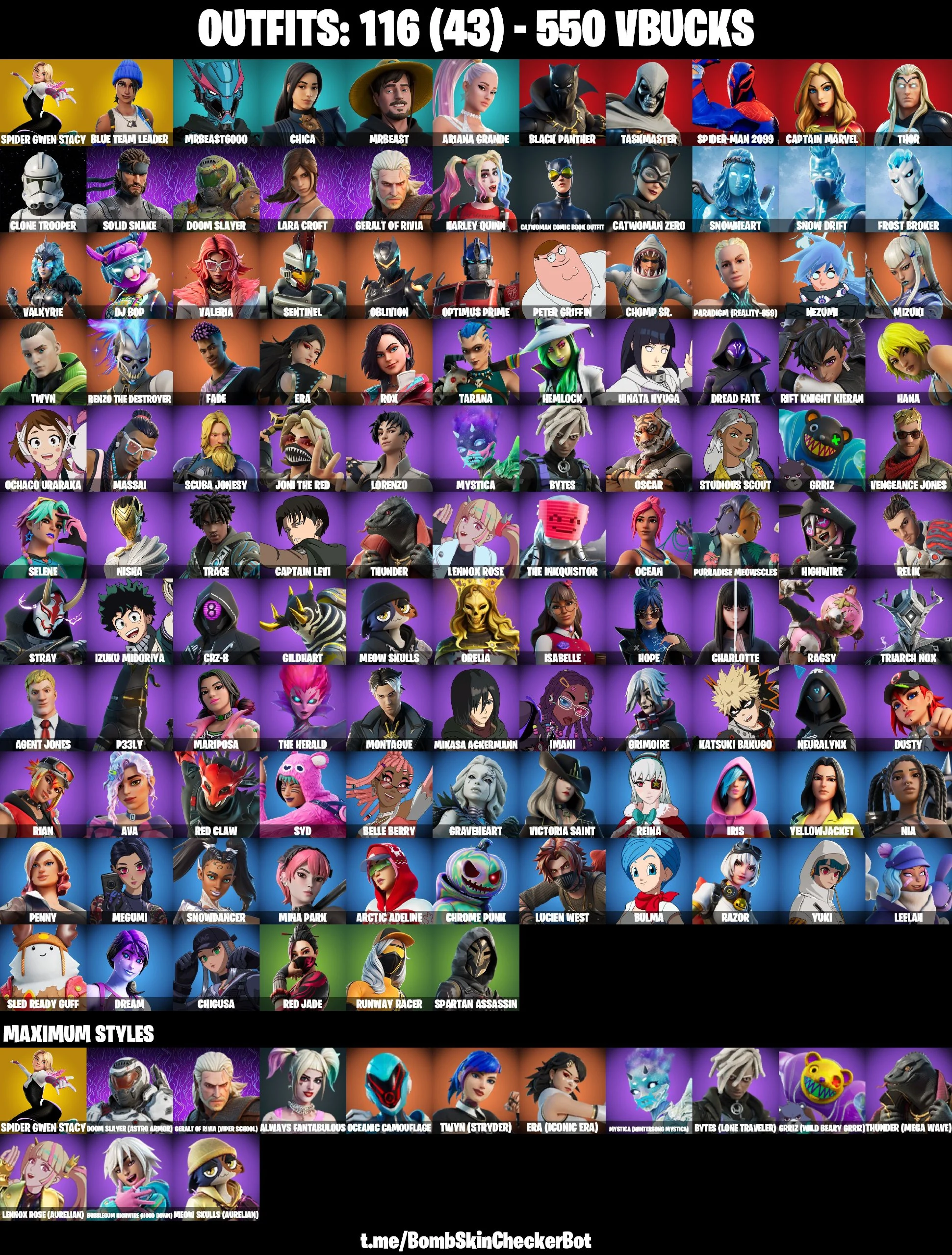 116 Skins| Catwoman Comic, Spidergwen Stacy, Chica , Ariana Grande, Quinn, Spiderman 2099, Izuku Midoriya, Captain Marvel|Full Access