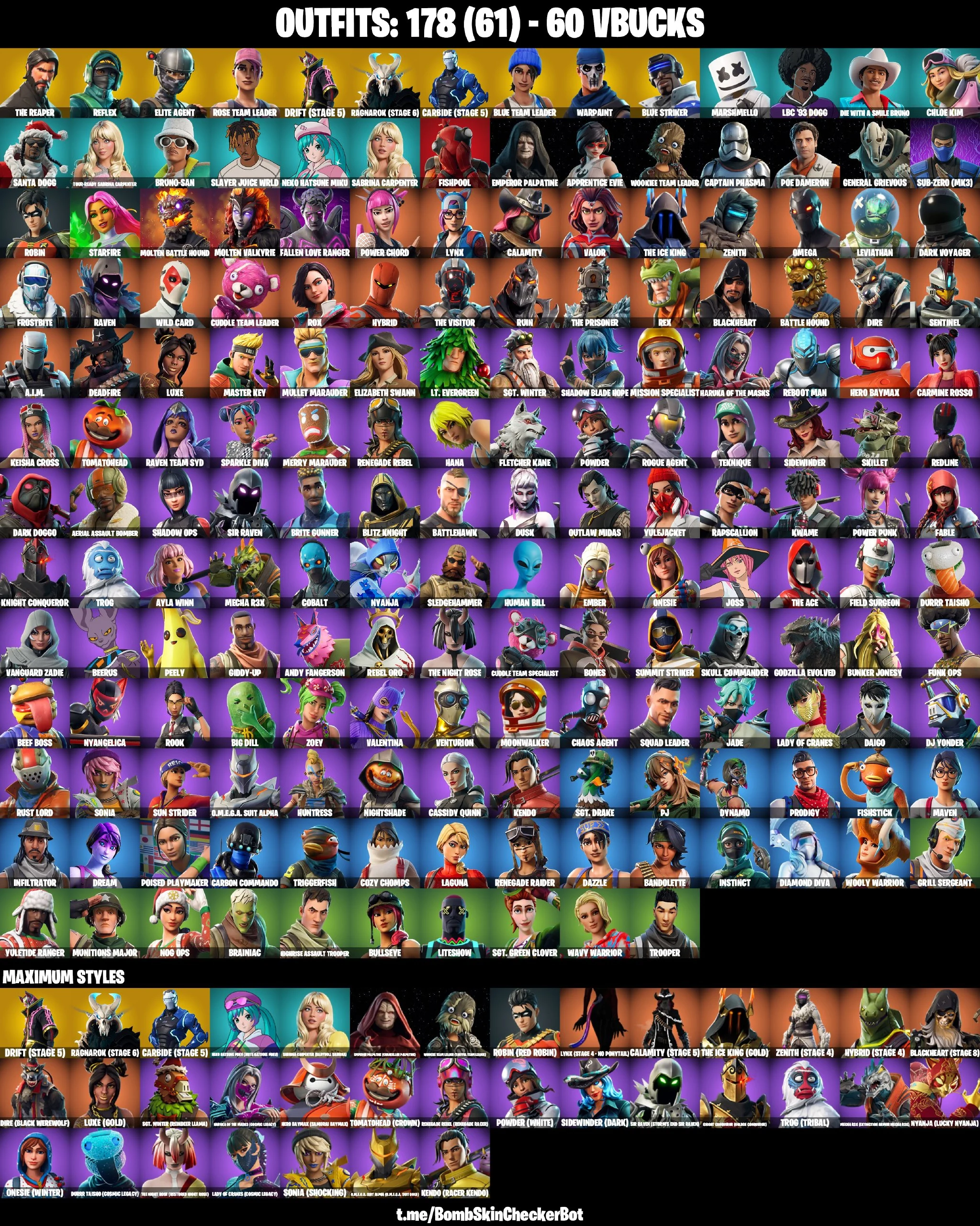 ✅178 Skins✅ The Reaper , Hot Marat , OG STW , Take The L