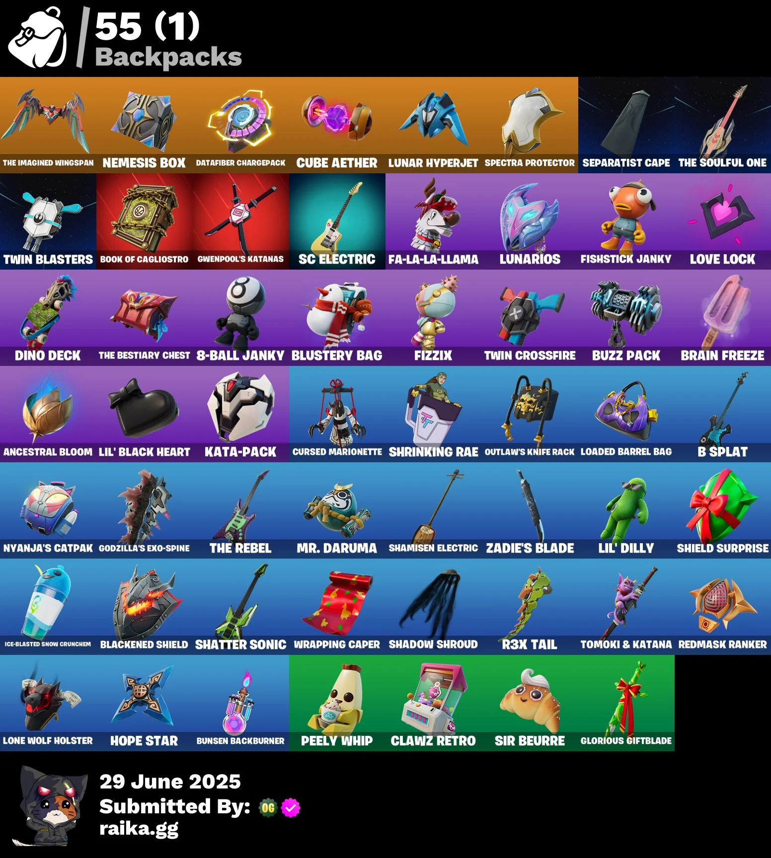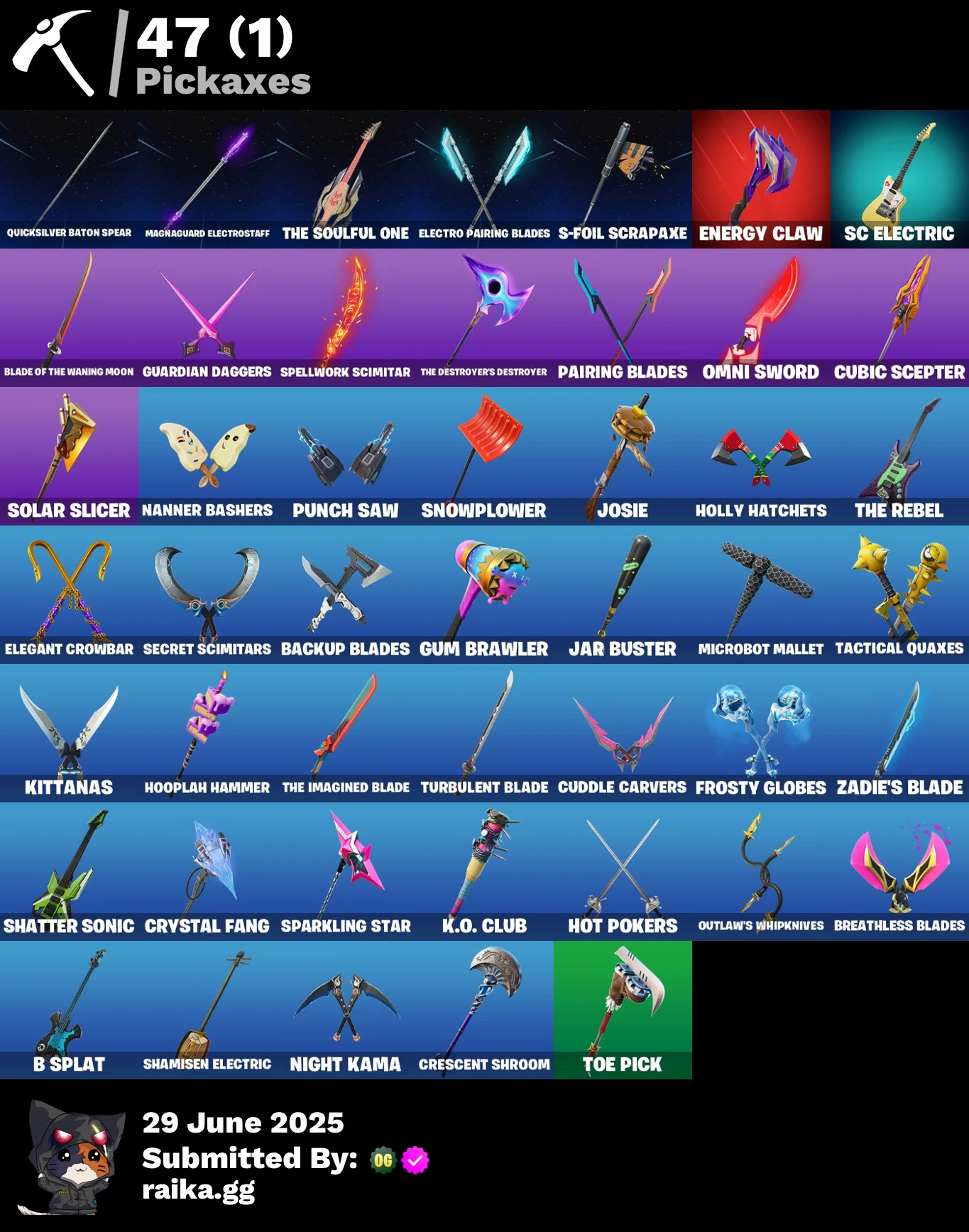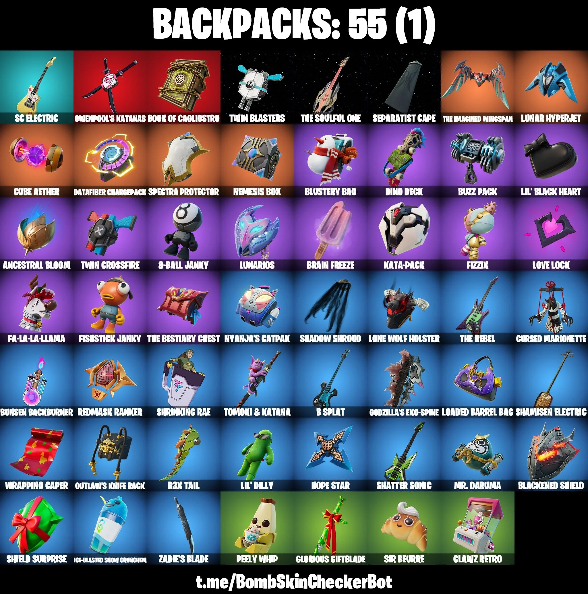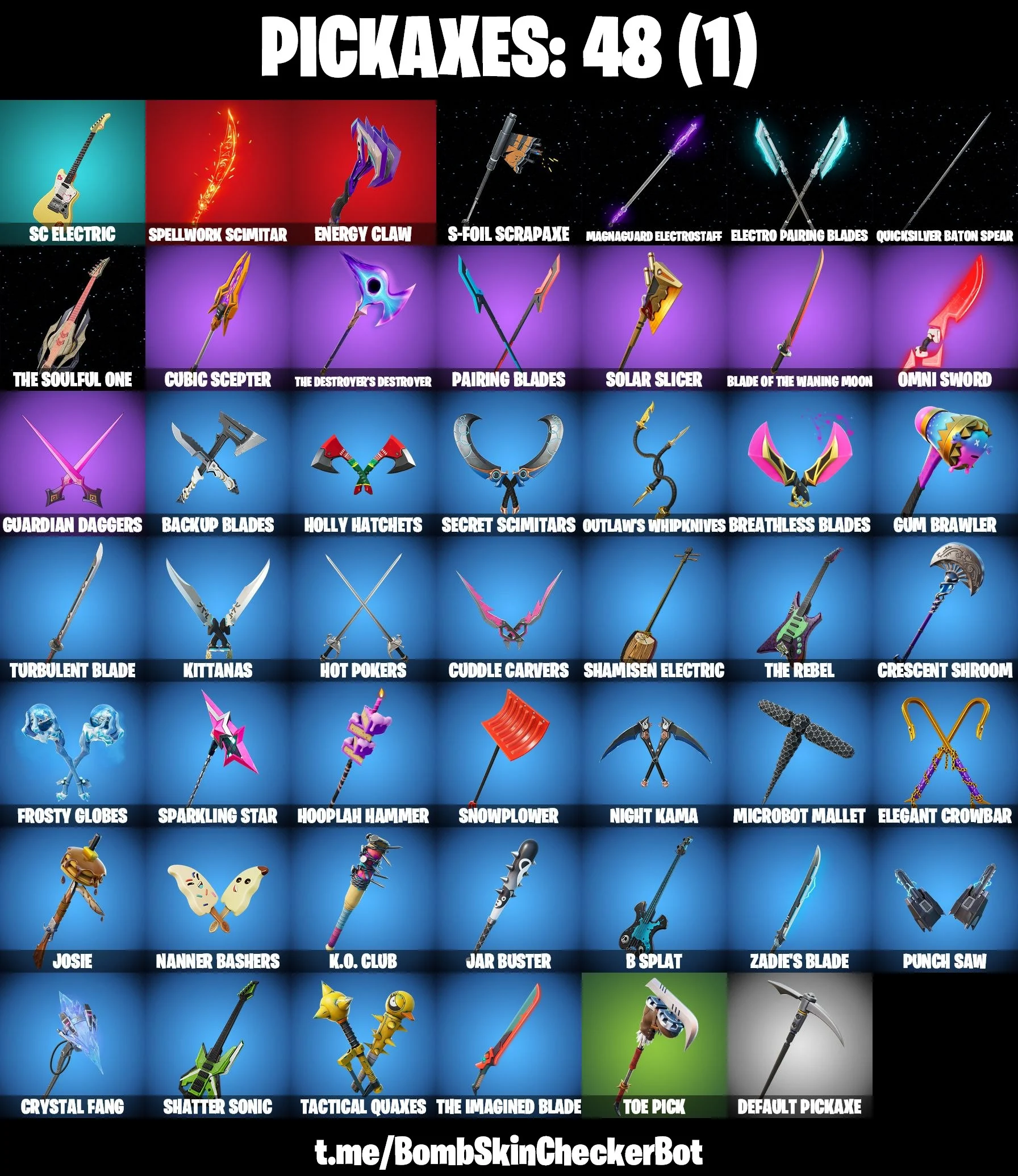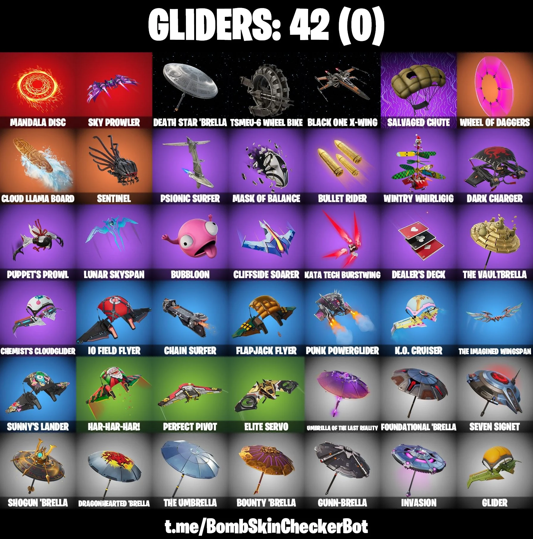 21 skins | The Origin | The Imagined | Snap | Apprentice Evie | General Grievous | Poe Dameron | Doctor Strange | Prowler | Polar Peely | 400 VB | Nai@1
