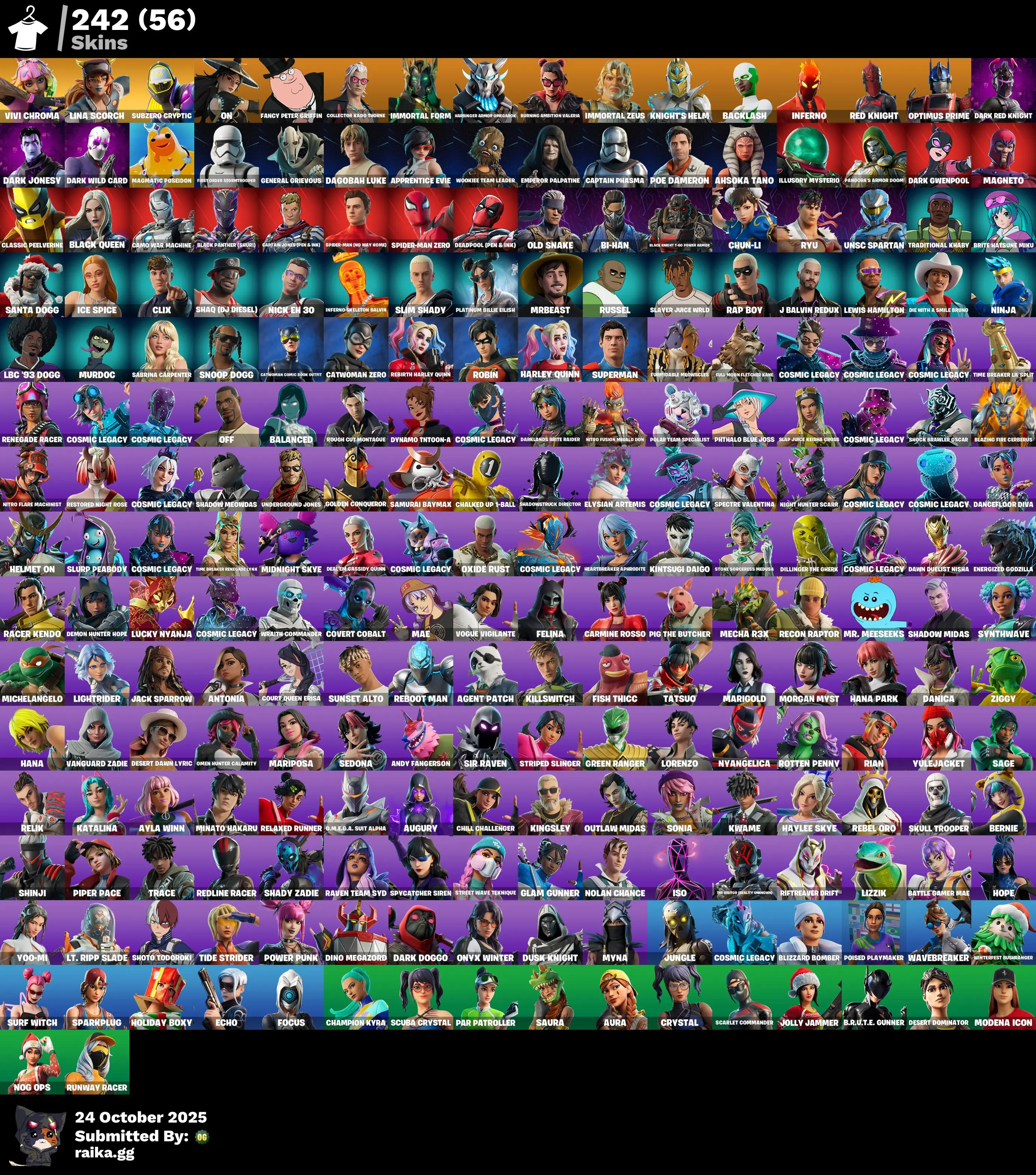 235 skins | Poseidon🎃Subzero Cryptic🎃Spectra Knight🎃Dark Wild Card🎃Valeria🎃Vivi Chroma🎃Peter Griffin🎃Inferno🎃Hades🎃Optimus Prime🎃Zeus🎃Kado Thorne🎃Dark Red Knight🎃Backlash🎃Red Knight🎃First Order Stormtrooper🎃Era🎃Lina Scorch D5193