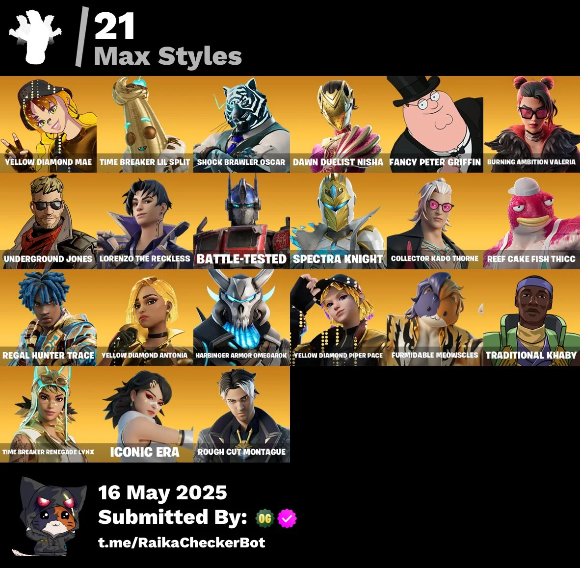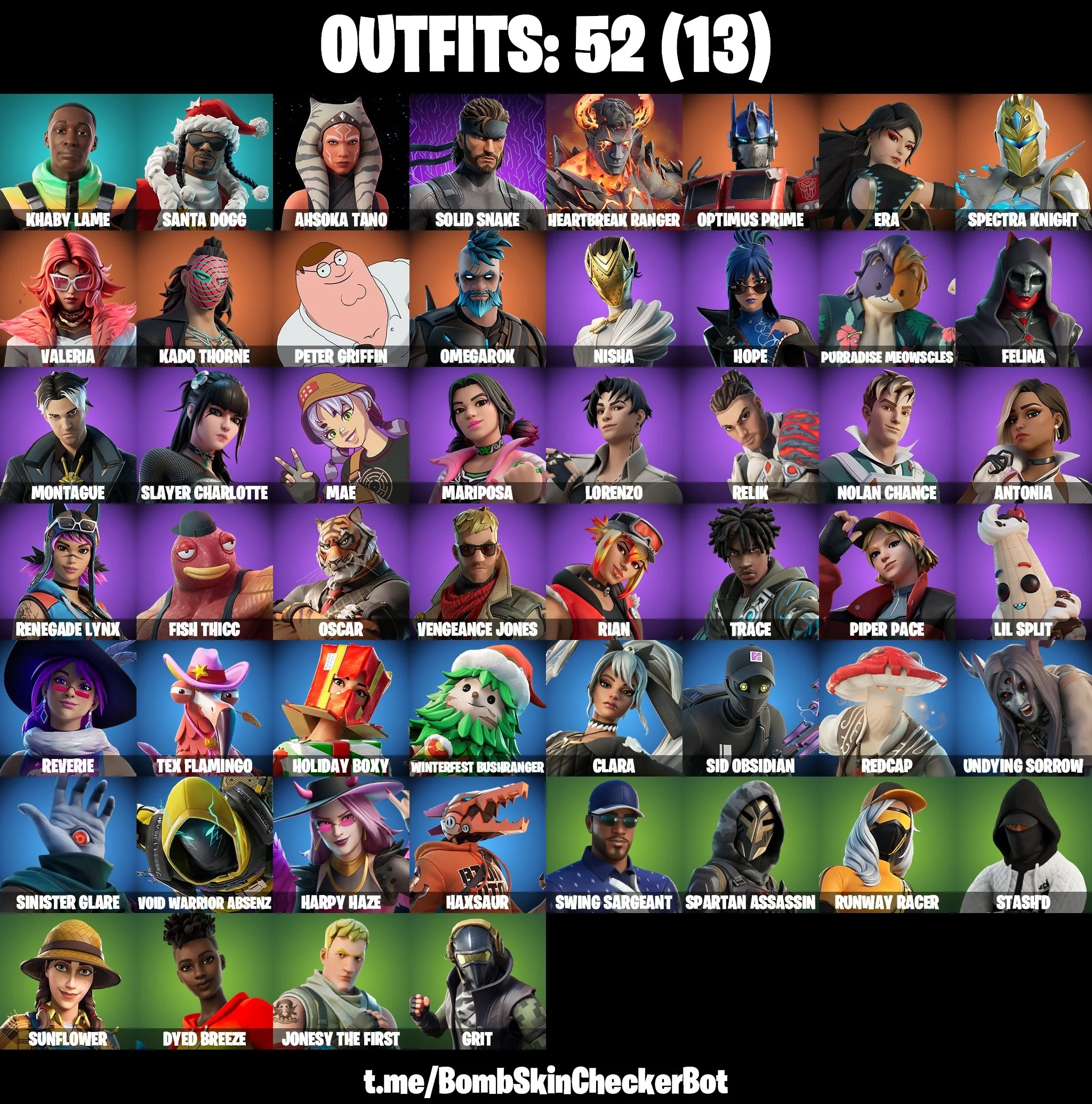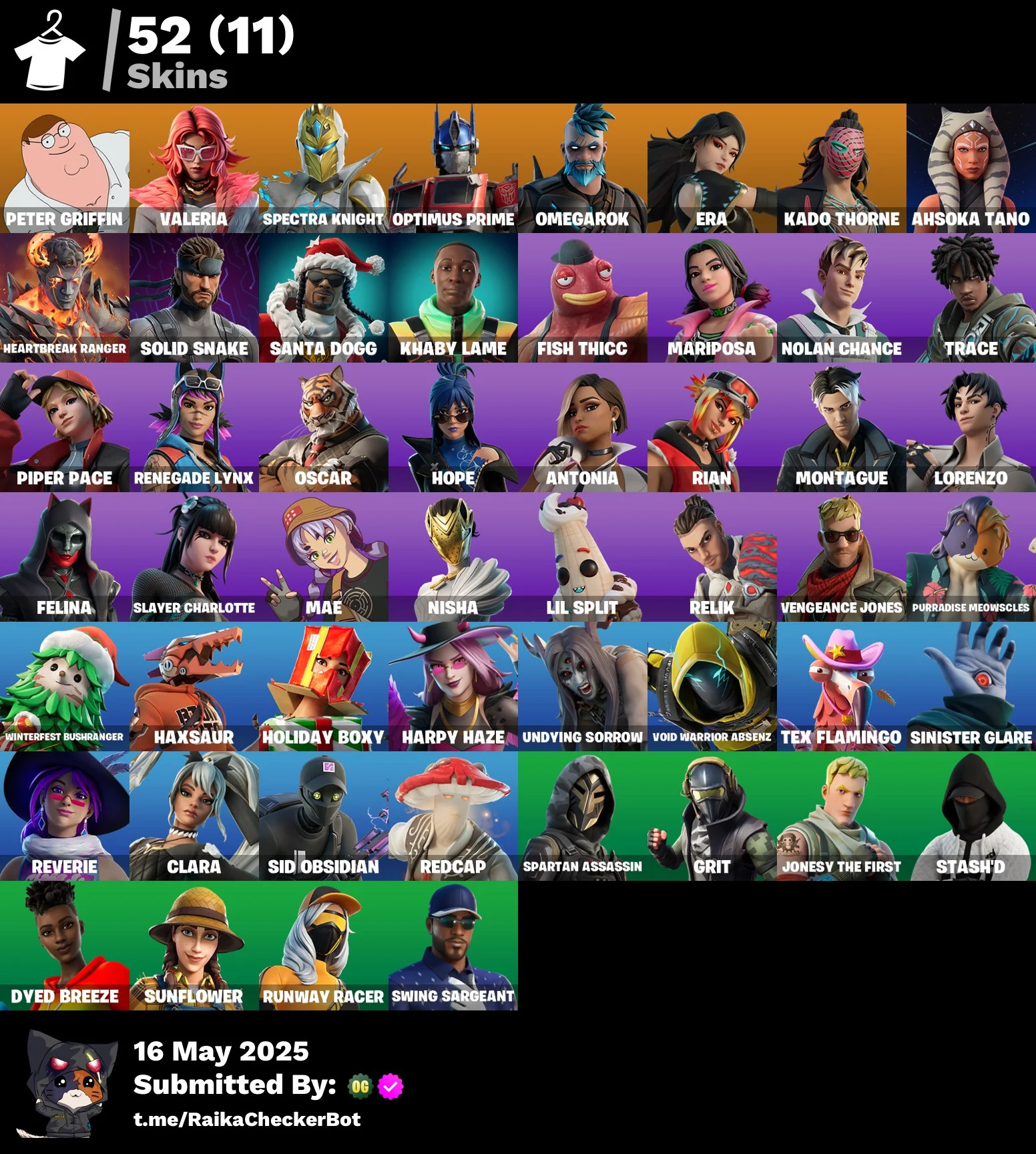 52 skins | Peter Griffin | Valeria | Spectra Knight | Optimus Prime | Omegarok | Era | Kado Thorne | Ahsoka Tano | Heartbreak Ranger | Nai@1