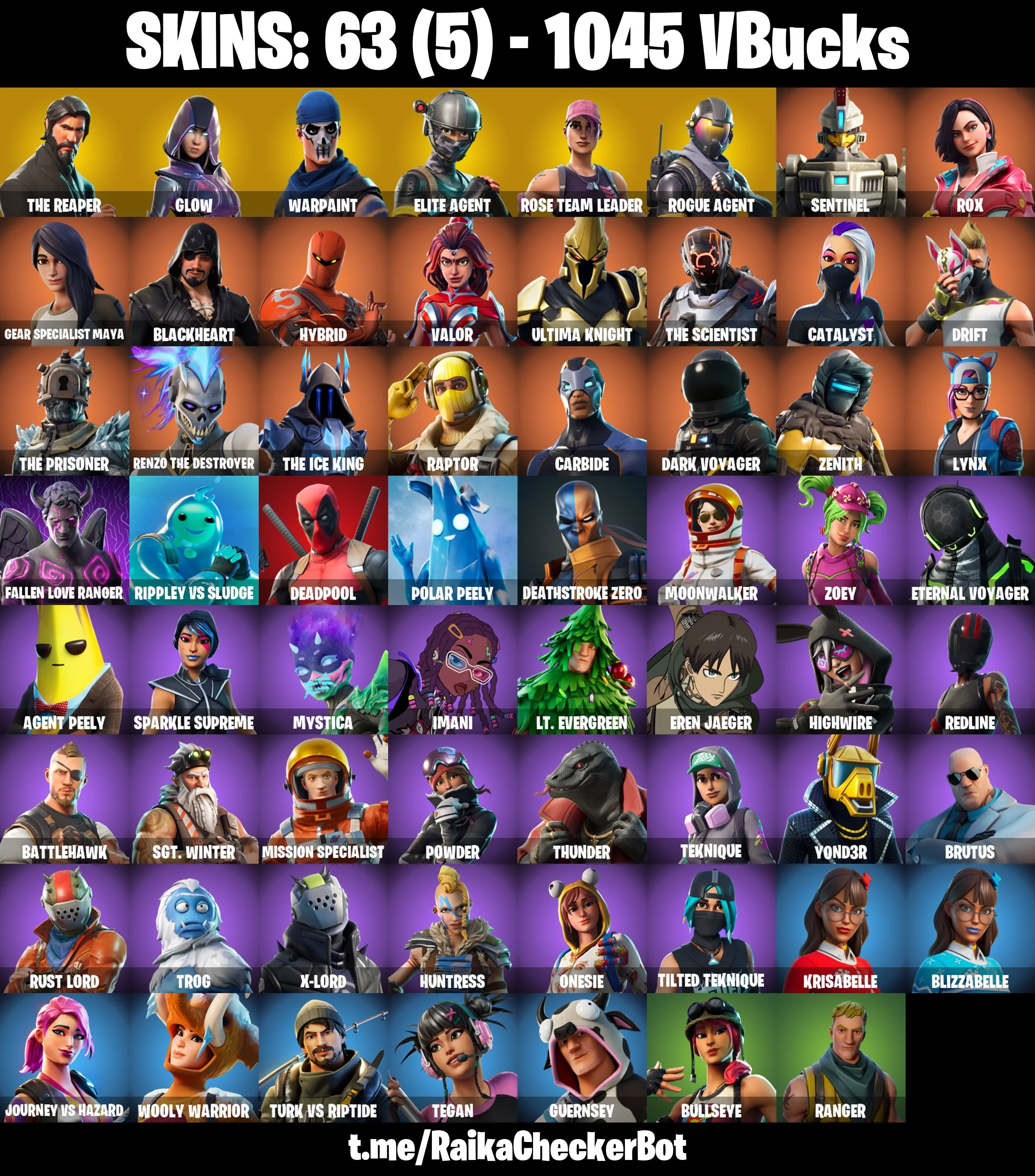 63 skins ❤️ Take The L 💘 The Reaper 💞 Glow 💖 Merry Mint Axe 💘 Elite Agent 💝 Rogue Agent 💞 Sentinel 💖 | 1045 VB [PC/XBOX/PSN]