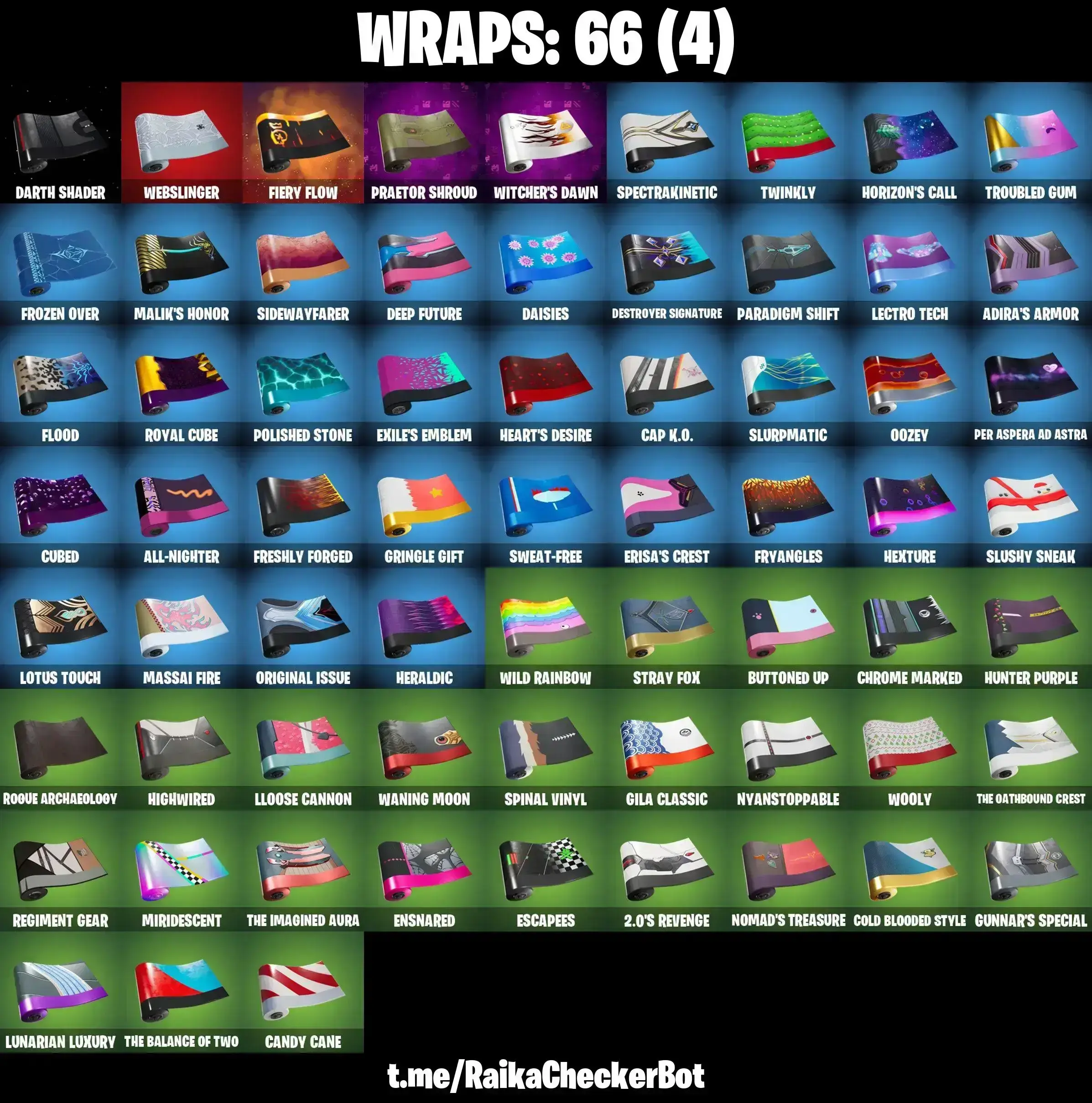 66 SKINS | POLO PRODIGY | STADIUM HERO 92 | HAVOC | SUB COMMANDER | SIPDER-MAN | DARTH VADER | SPIDER-GWEN STACY | MEOW SKULLS | EVIE | TSUKI 2.0 | HELSIE | POTASSIUS PEELS | NOG OPS | RAINBOW RACER | MAX STYLES LENNOX ROSE | MYST