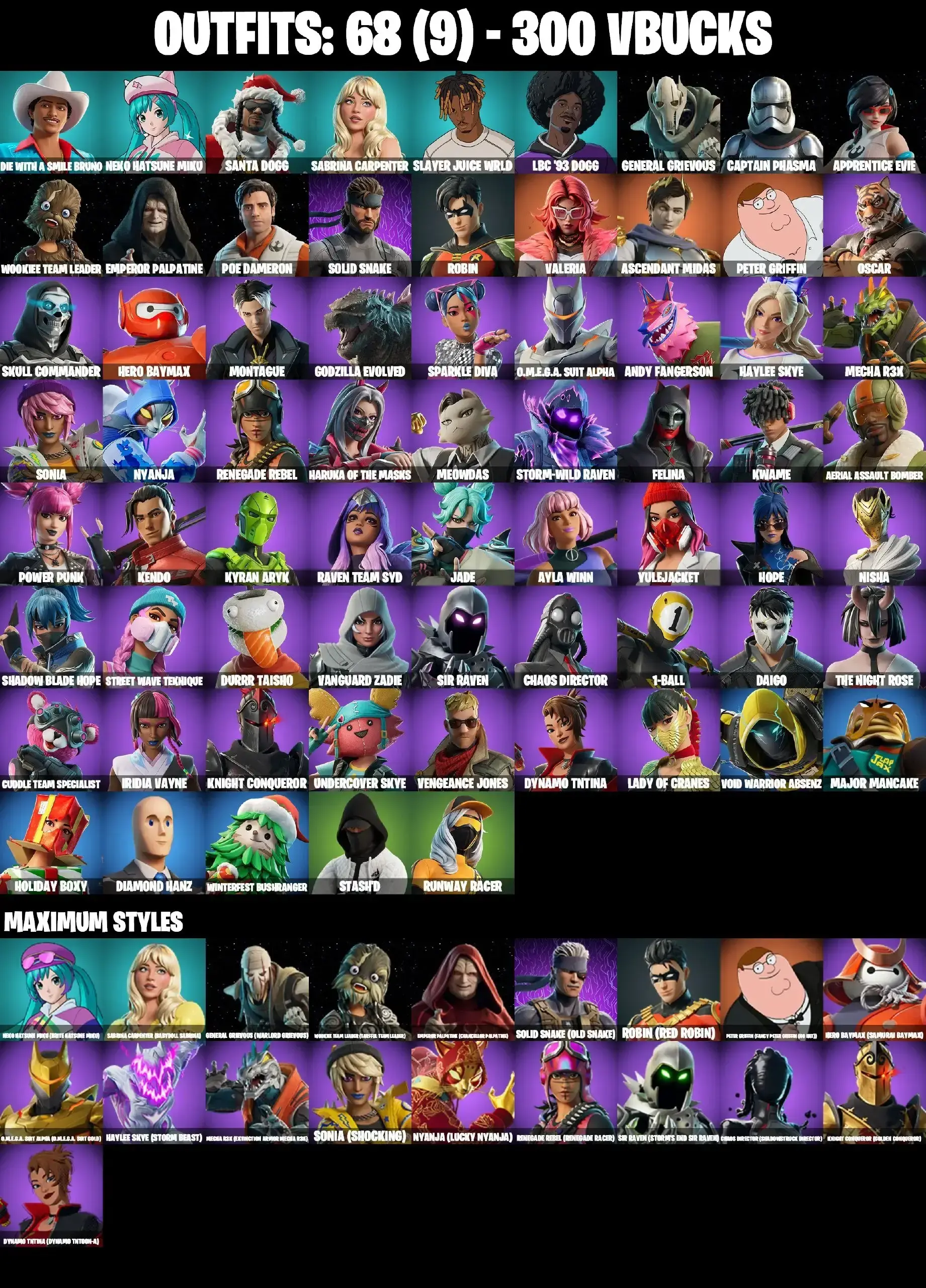 68 SKINS | EMPEROR PALPATINE MAX | GET GRIDDY | GENERAL GRIEVOUS | CAPTAIN PHASMA | APPRENTICE EVIE | WOOKIE TEAM LEADER MAX | POE DAMERON | DIAMIND HANZ | DURRR TAISHO | LADY OF CRANES | CAN PLAY ON PSN,XBOX,PC,NINTENDO,MOBILE |